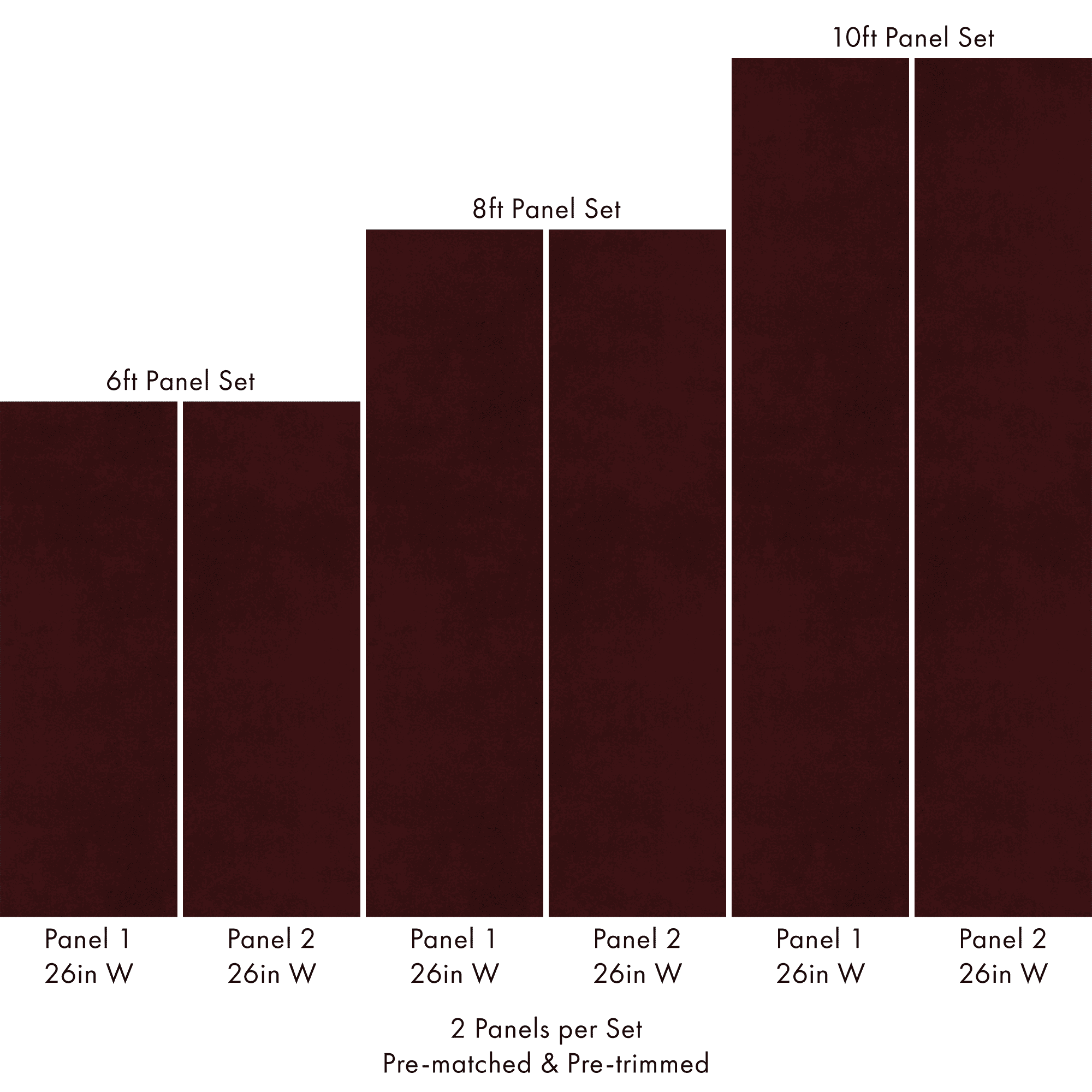 Each order includes 2 pre-matched, pre-trimmed panels designed for a seamless installation. Panels measure 26 inches wide and are available in 6 ft, 8 ft, or 10 ft lengths. For custom sizing, please contact us.
