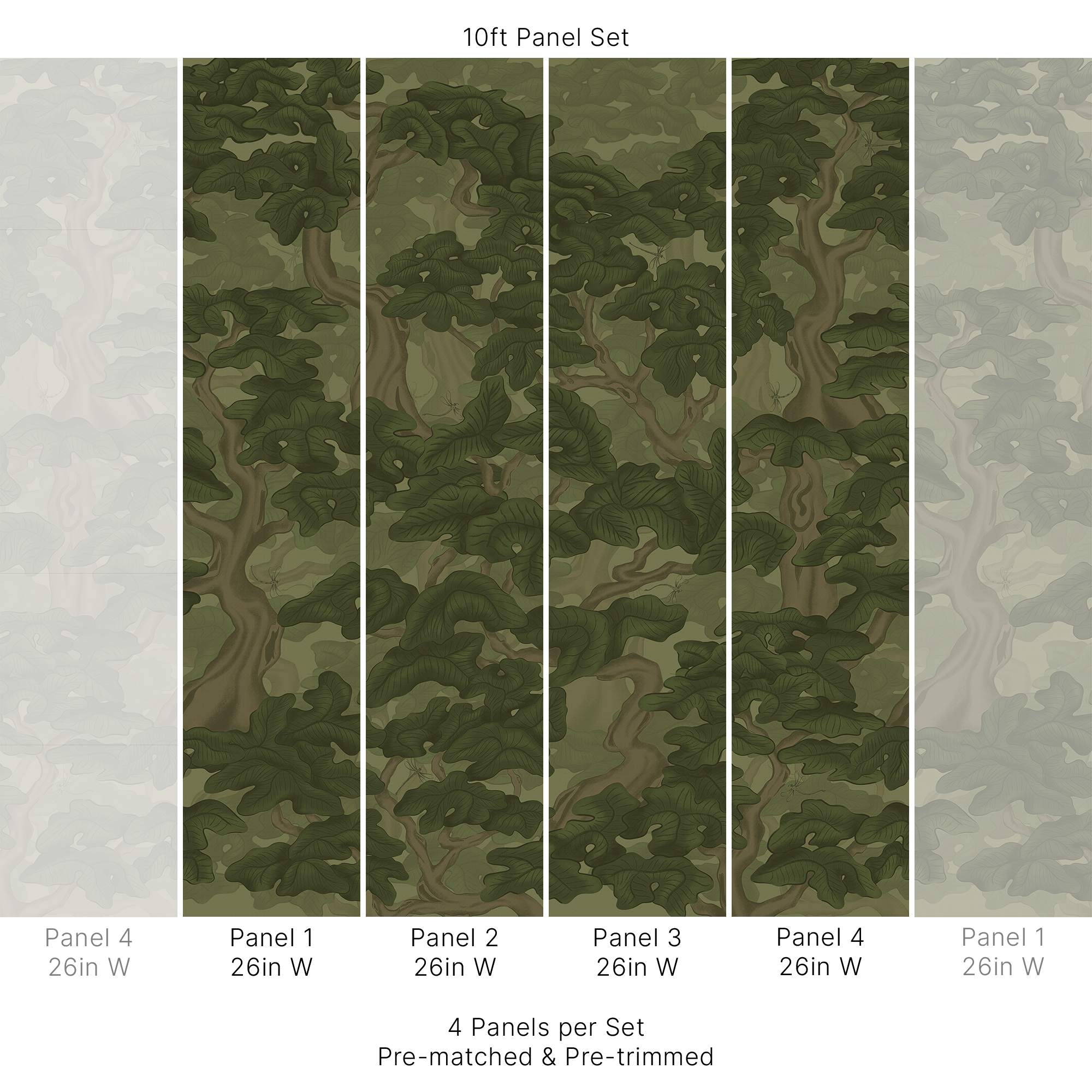 This wall mural is produced and sold in a pre-matched & pre-trimmed 4-panel set with a total width of 104in (264cm).