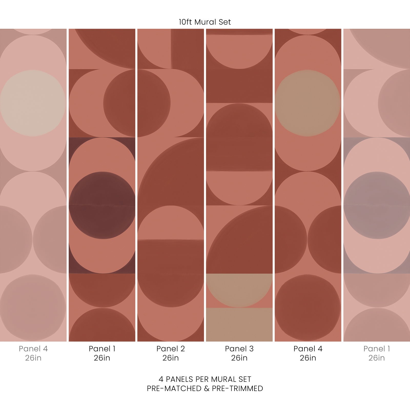 This wall mural is produced and sold in a pre-matched & pre-trimmed 4-panel set with a total width of 104in (264cm).