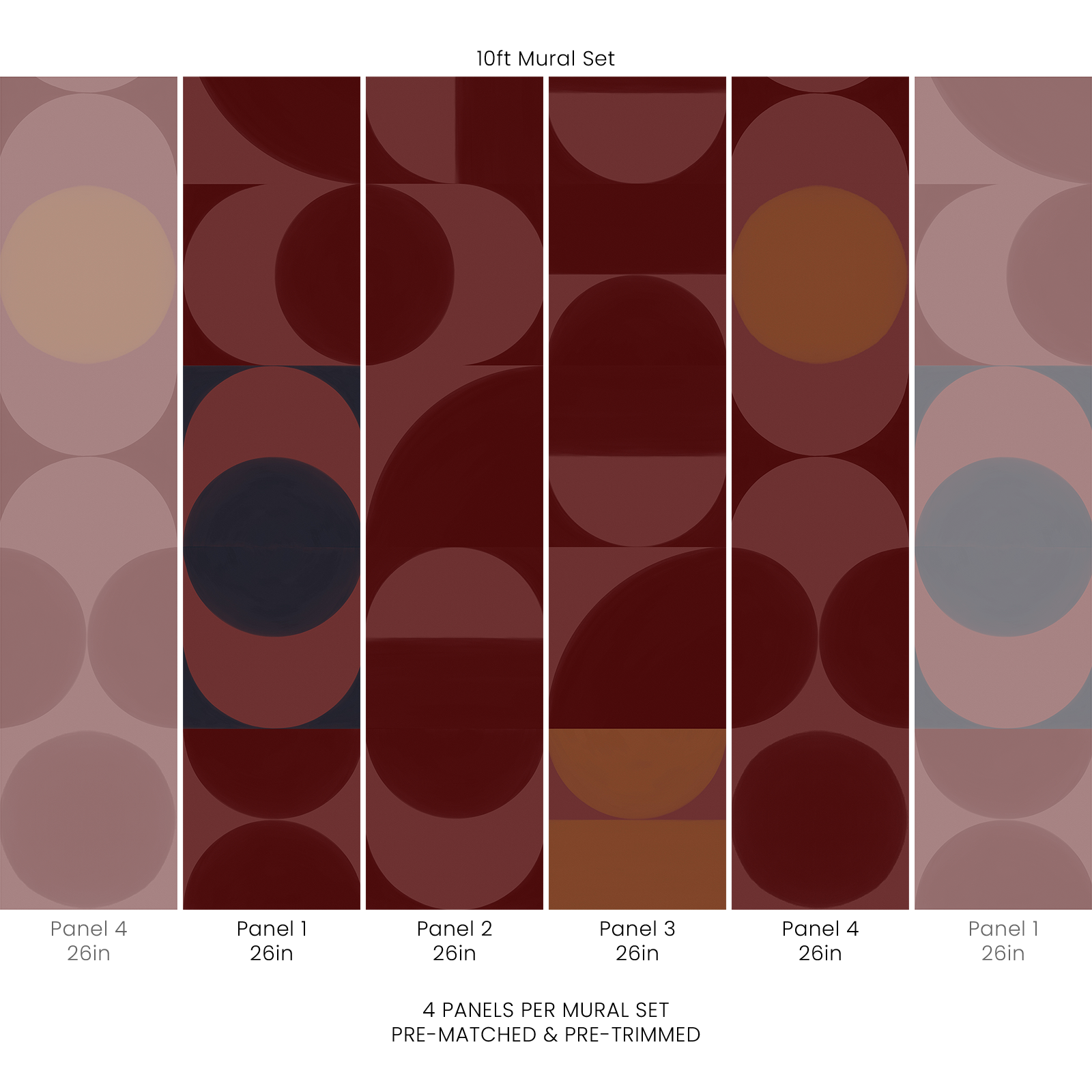 10ft Mural Set: 4 panels x 26in W x 10ft L (66cm x 305cm)