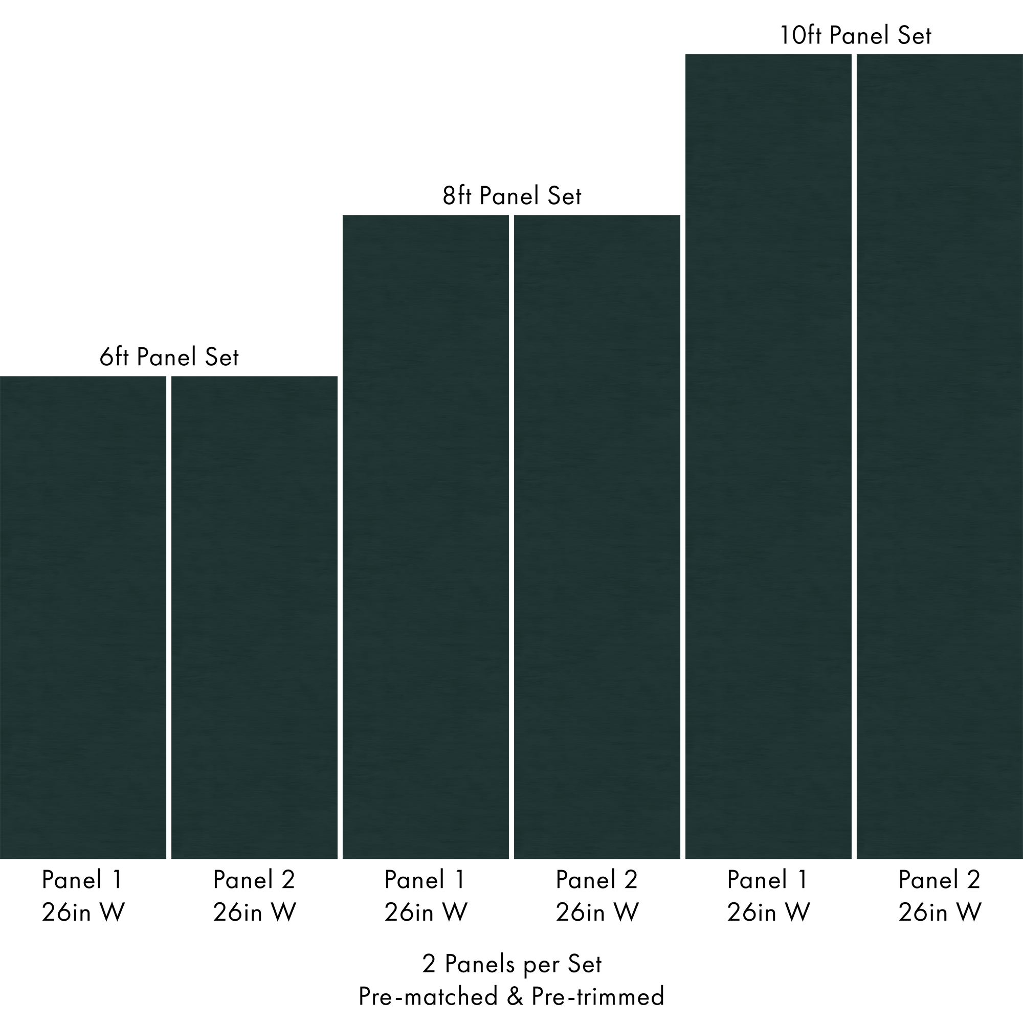 Each order includes 2 pre-matched, pre-trimmed panels designed for a seamless installation. Panels measure 26 inches wide and are available in 6 ft, 8 ft, or 10 ft lengths. For custom sizing, please contact us.