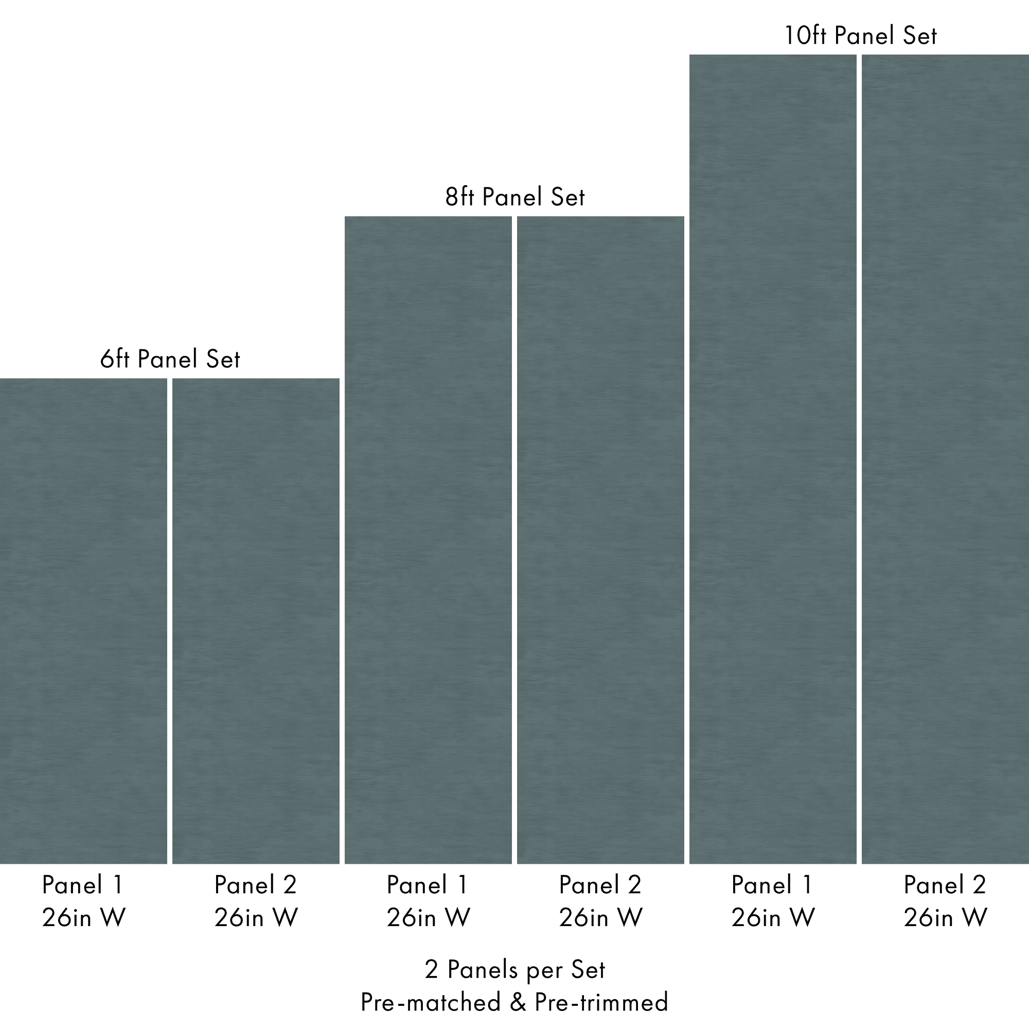 Each order includes 2 pre-matched, pre-trimmed panels designed for a seamless installation. Panels measure 26 inches wide and are available in 6 ft, 8 ft, or 10 ft lengths. For custom sizing, please contact us.