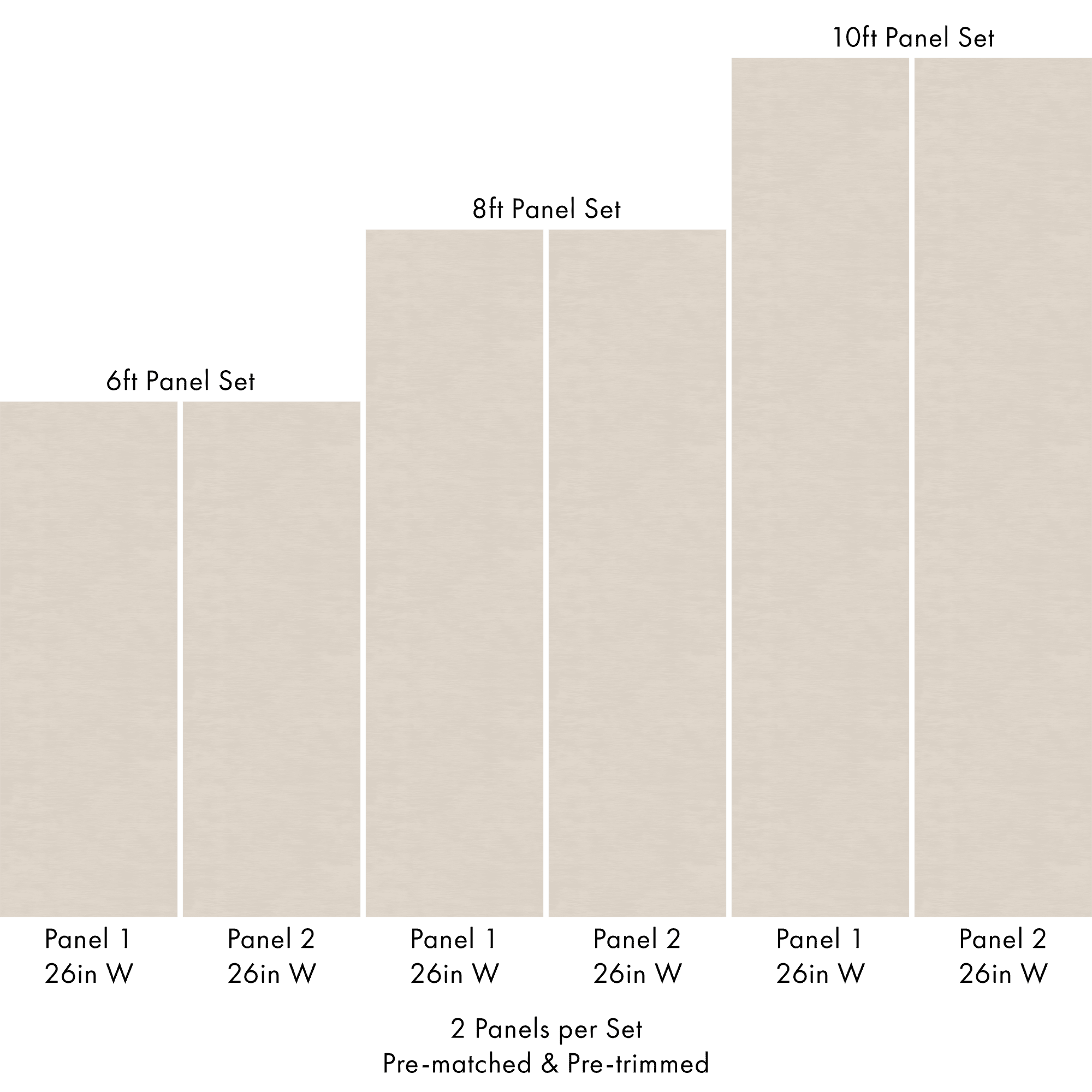Each order includes 2 pre-matched, pre-trimmed panels designed for a seamless installation. Panels measure 26 inches wide and are available in 6 ft, 8 ft, or 10 ft lengths. For custom sizing, please contact us.