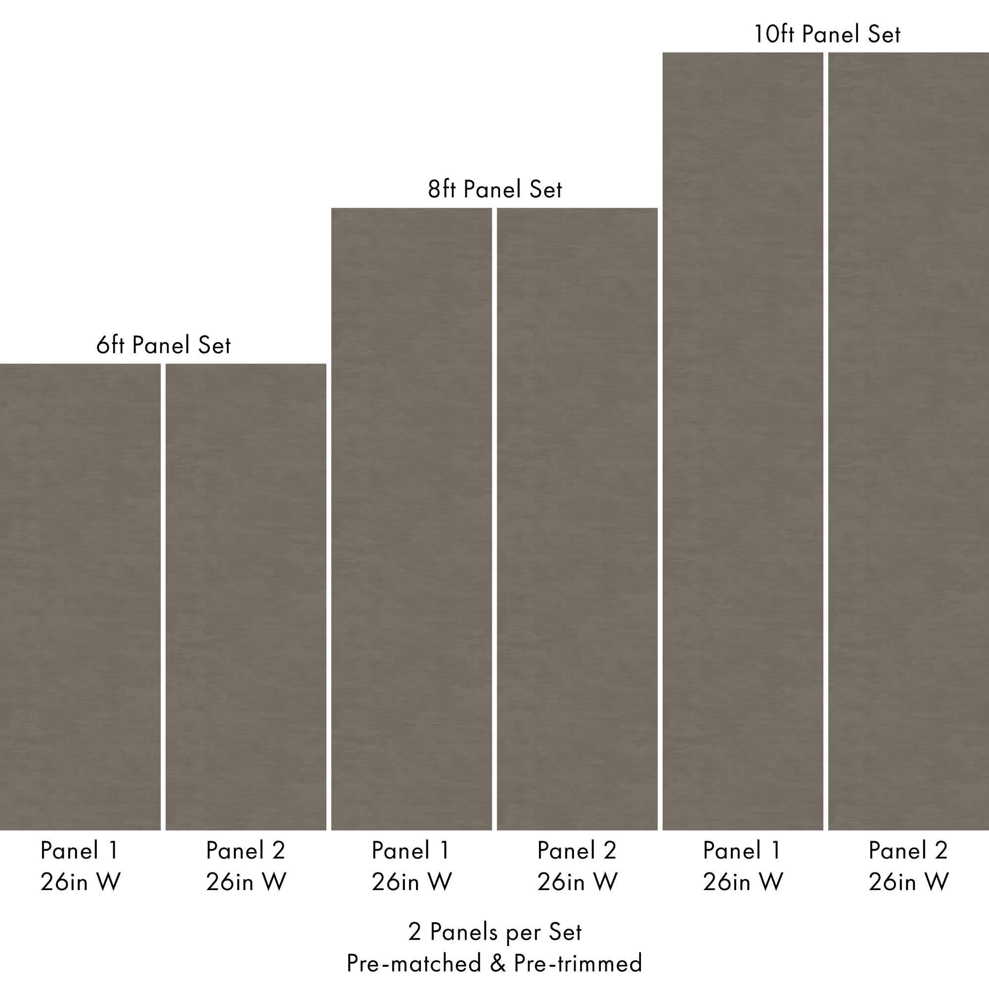 Each order includes 2 pre-matched, pre-trimmed panels designed for a seamless installation. Panels measure 26 inches wide and are available in 6 ft, 8 ft, or 10 ft lengths. For custom sizing, please contact us.