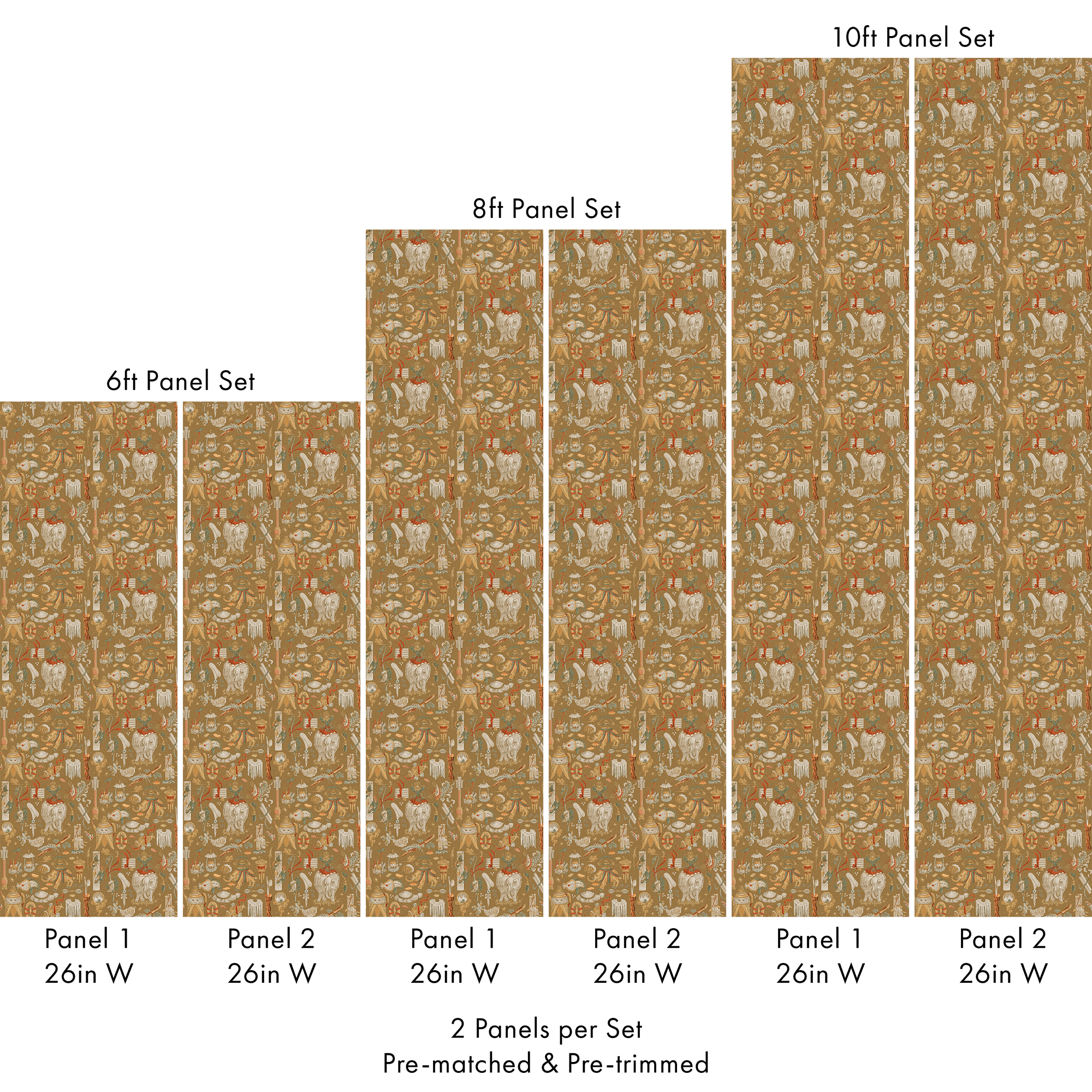 Each set includes 2 pre-matched and pre-trimmed panels designed for a seamless installation. Panels measure 26 inches wide and are available in 6 ft, 8 ft, or 10 ft lengths. For custom sizing, please contact us.