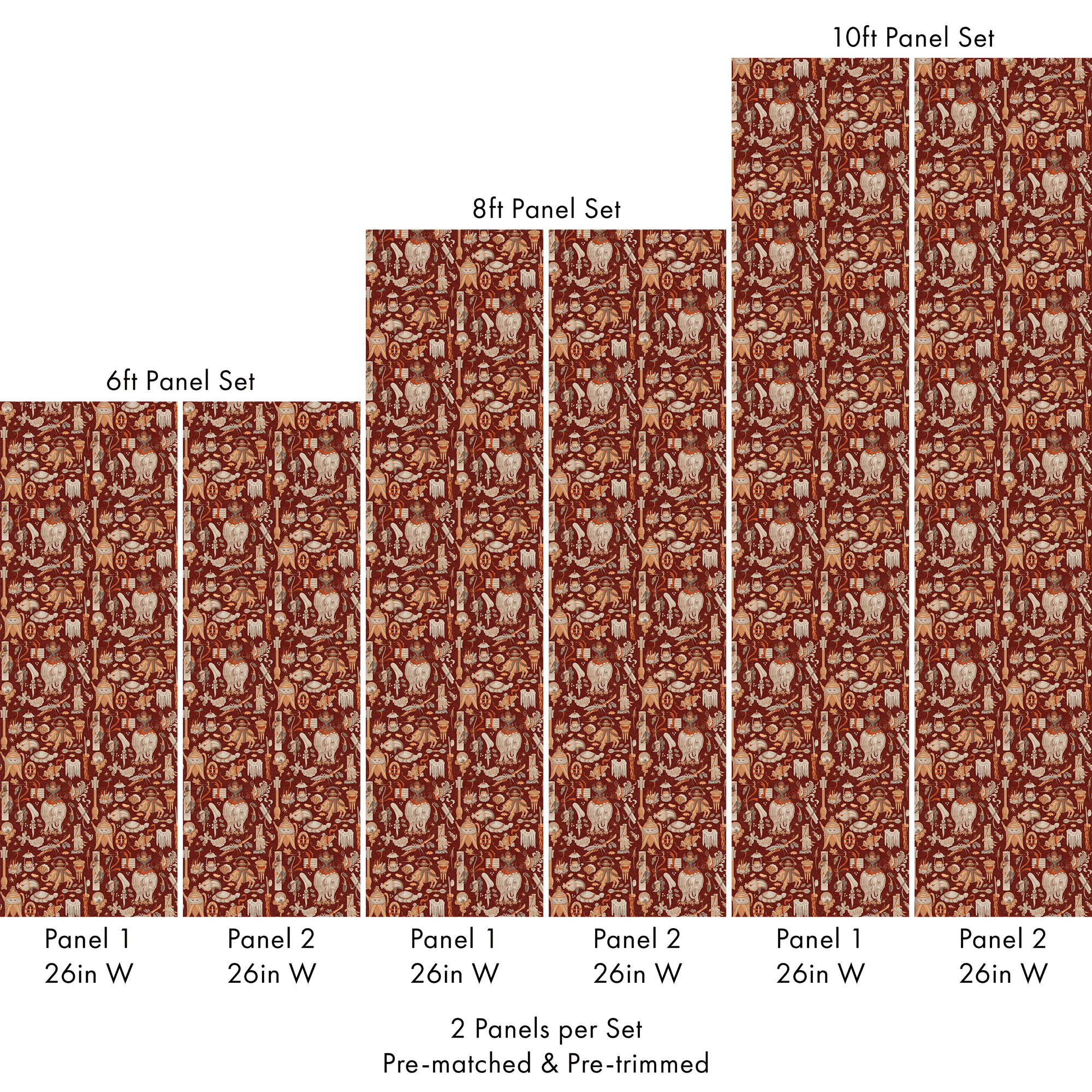 Each set includes 2 pre-matched and pre-trimmed panels designed for a seamless installation. Panels measure 26 inches wide and are available in 6 ft, 8 ft, or 10 ft lengths. For custom sizing, please contact us.