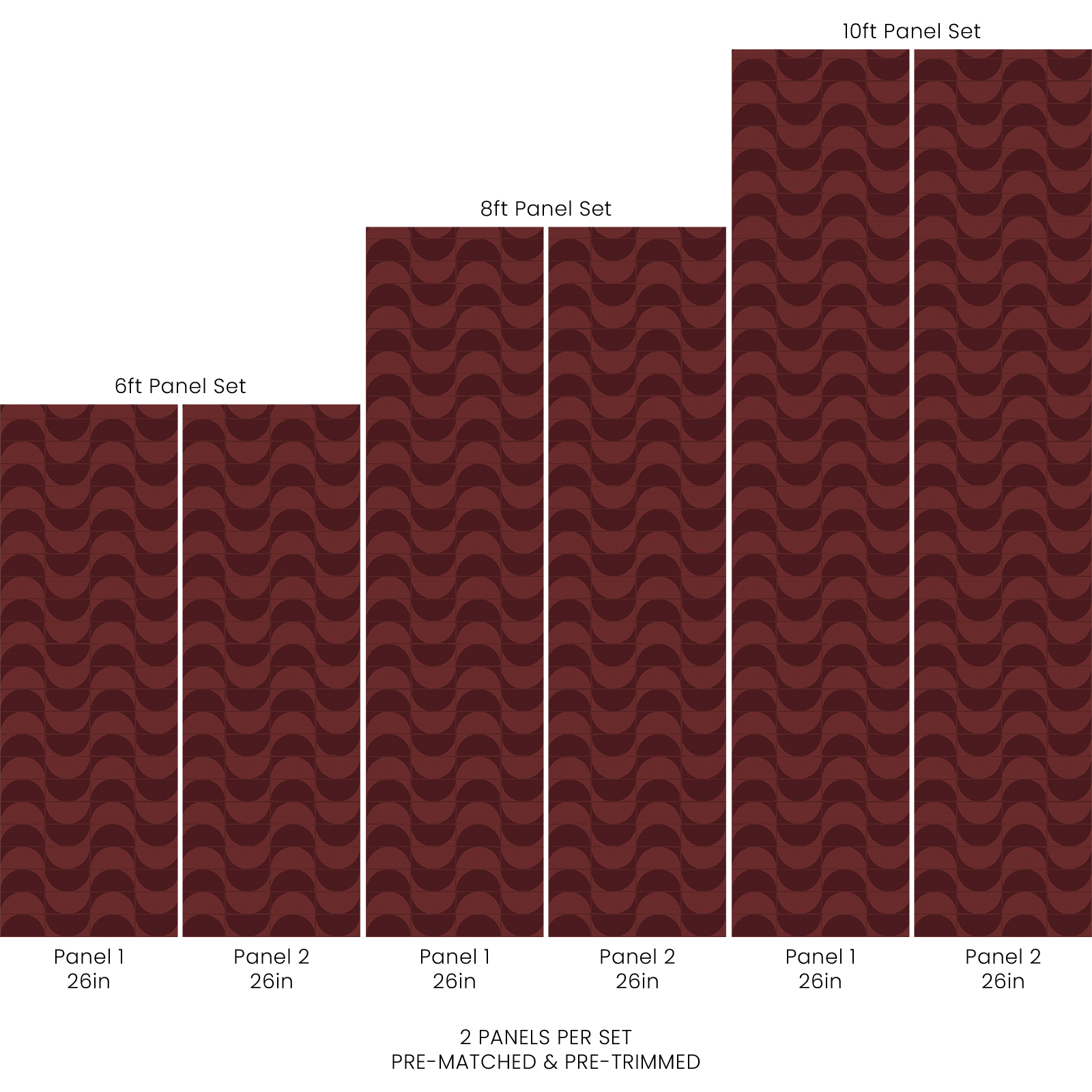 Each order consists of 2 pre-matched and pre-trimmed panels for an effortless installation. Each panel measures 26in W and either 6ft, 8ft, or 10ft L. Contact us for custom sizing.