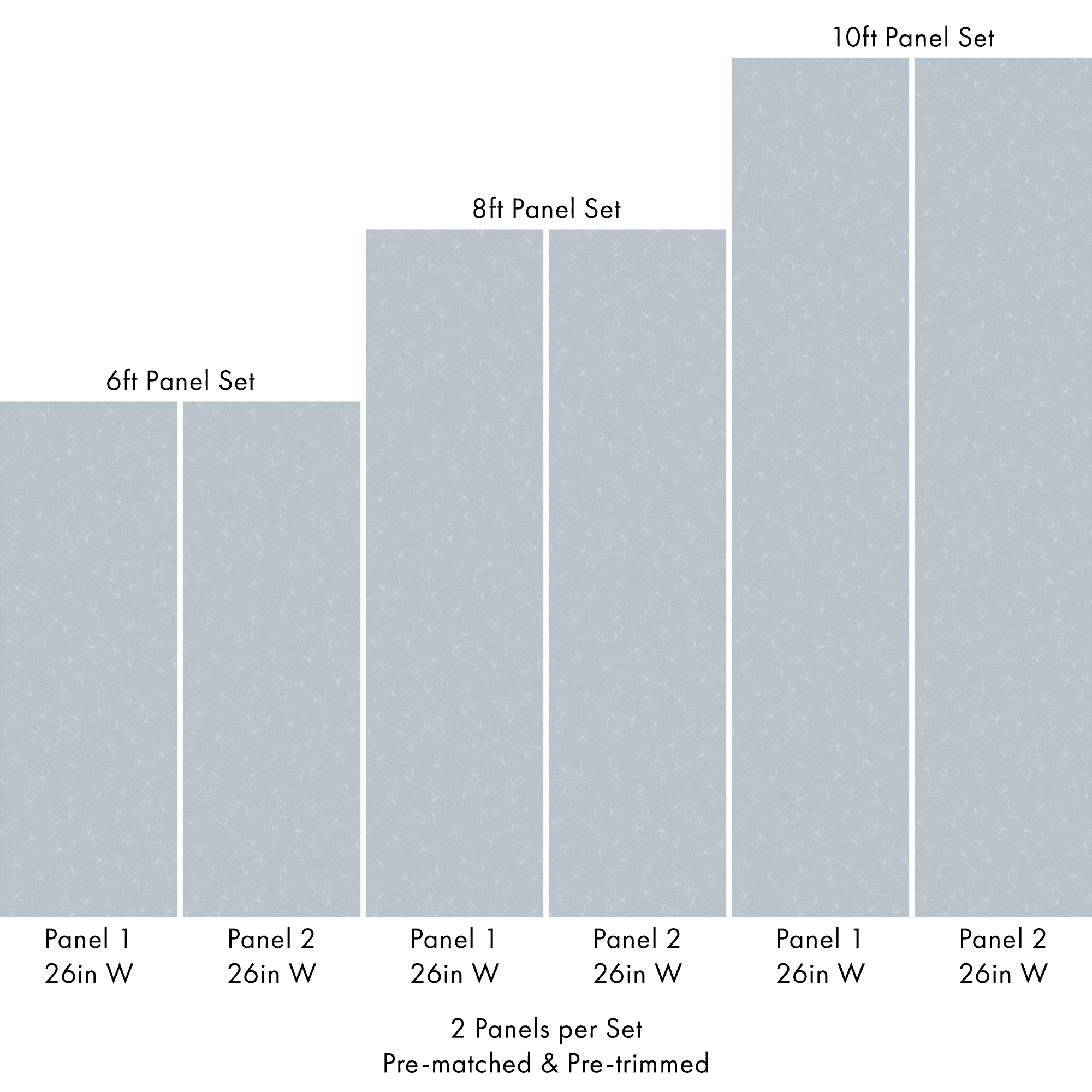 Each set includes 2 pre-matched and pre-trimmed panels designed for a seamless installation. Panels measure 26 inches wide and are available in 6 ft, 8 ft, or 10 ft lengths. For custom sizing, please contact us.