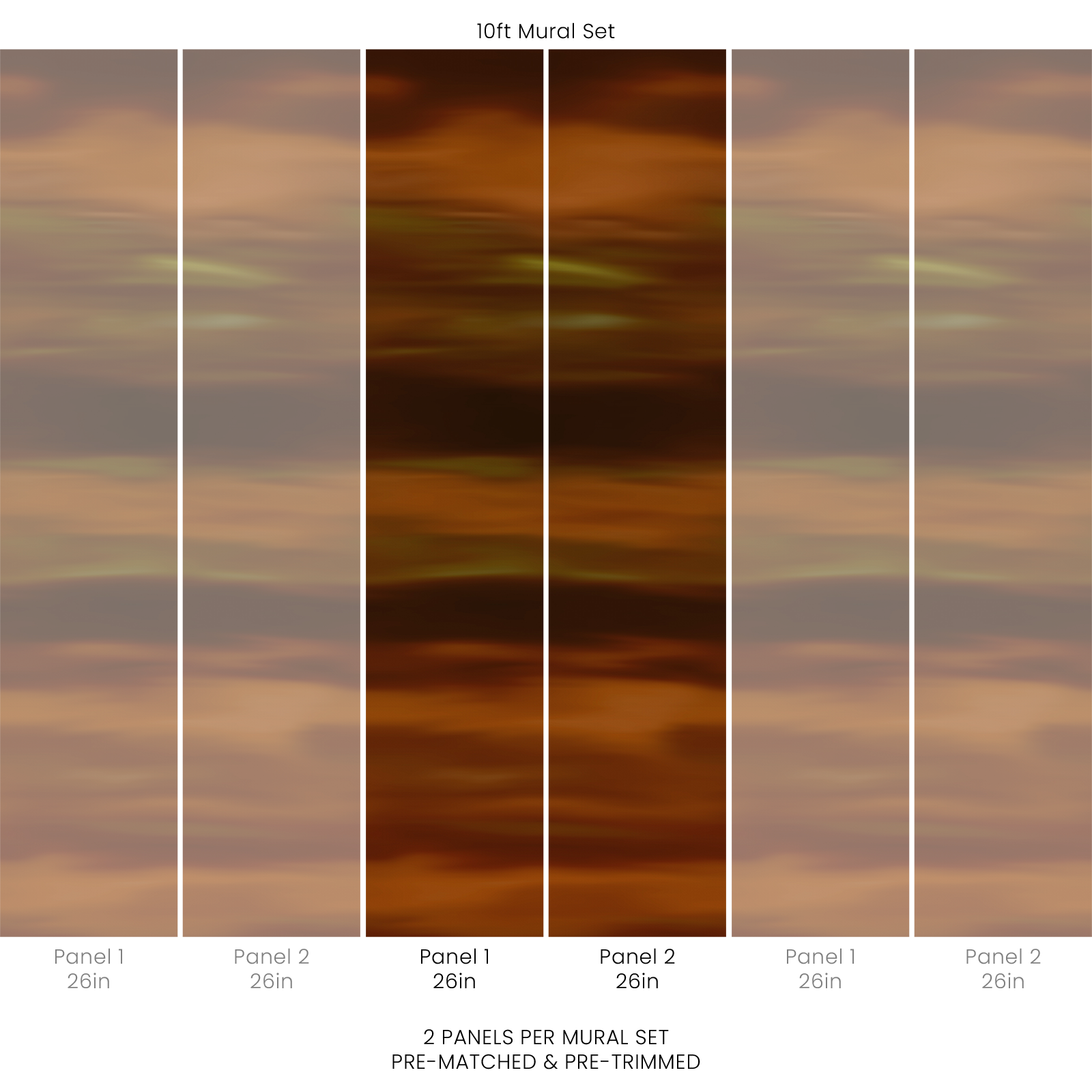 10ft Mural Set: 2 panels x 26in W x 10ft L (66cm x 305cm)