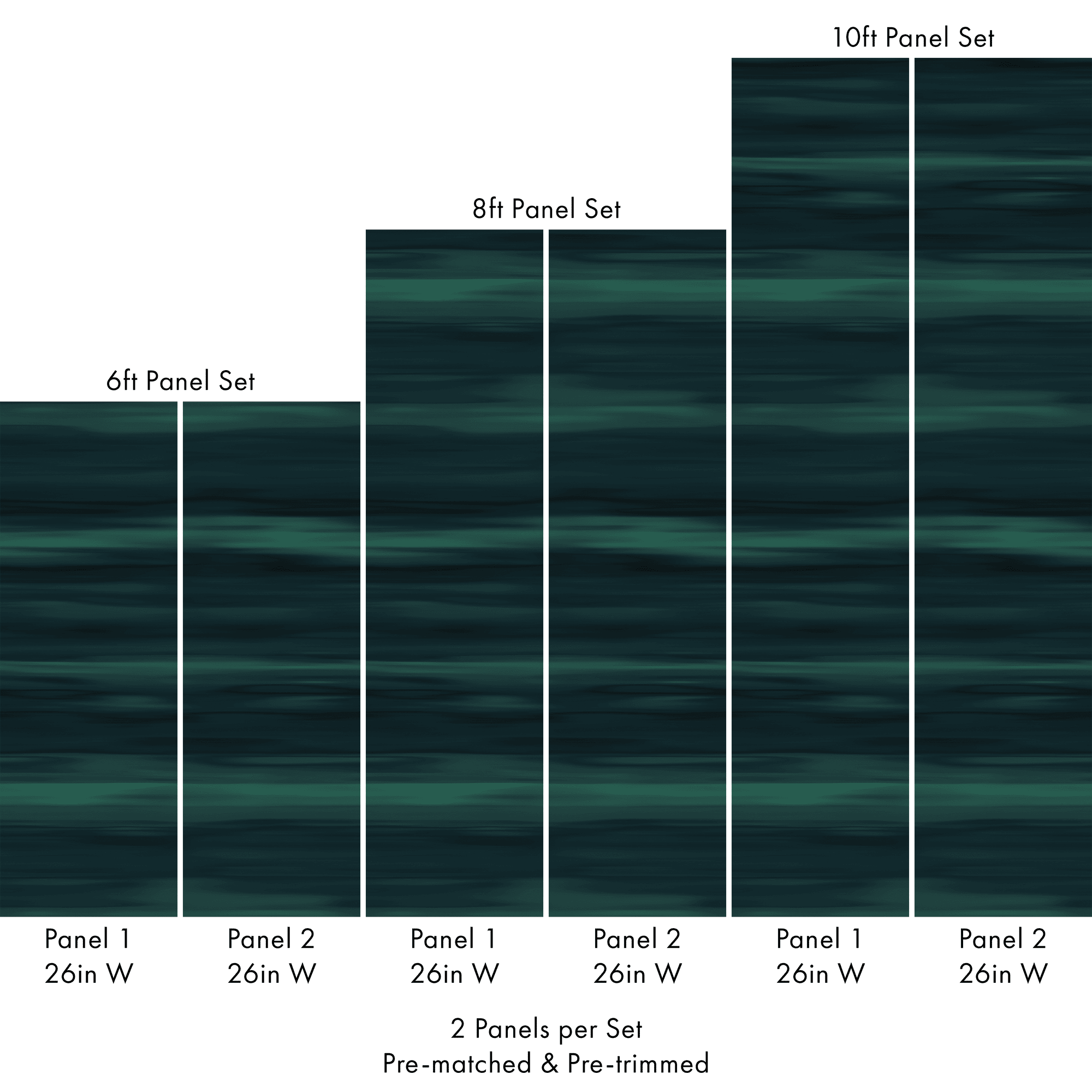 Each set includes 2 pre-matched and pre-trimmed panels designed for a seamless installation. Panels measure 26 inches wide and are available in 6 ft, 8 ft, or 10 ft lengths. For custom sizing, please contact us.