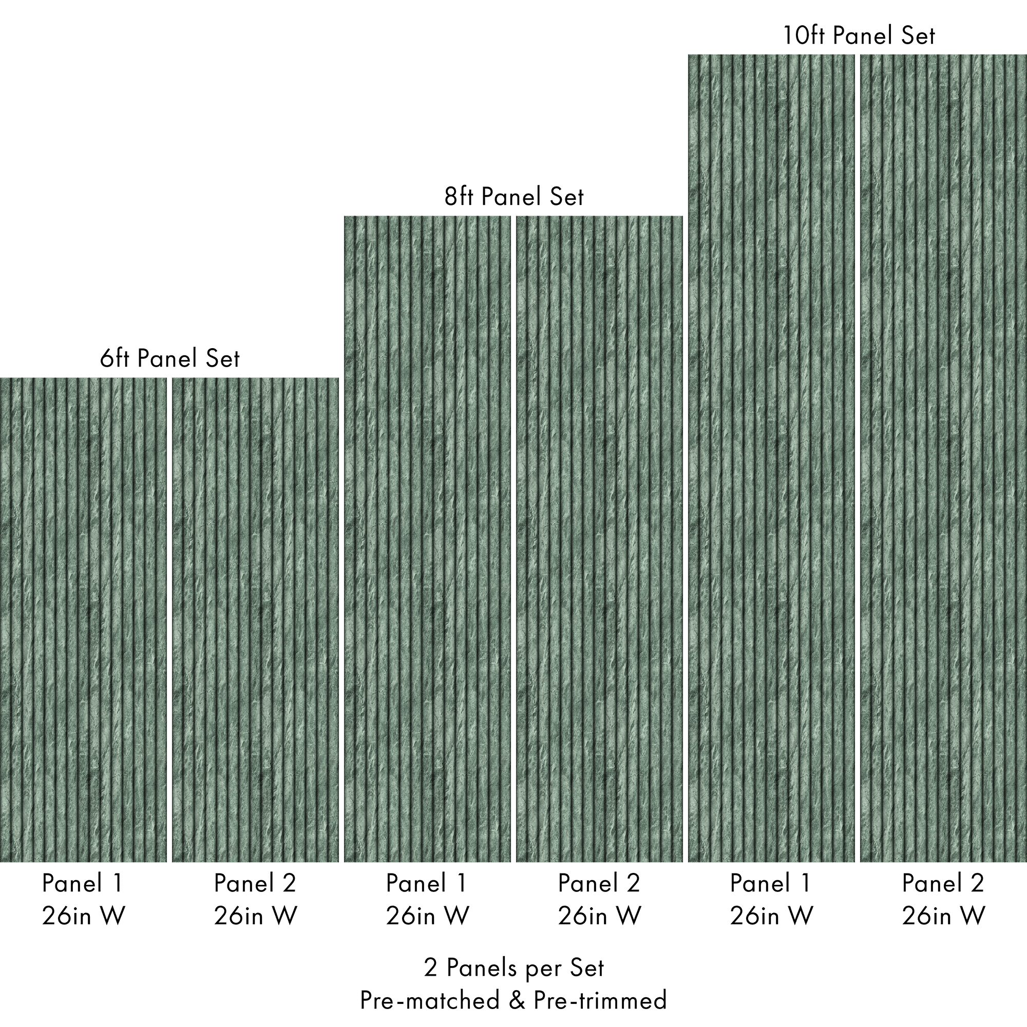 Each order consists of 2 pre-matched and pre-trimmed panels for an effortless installation. Each panel measures 26in W and either 6ft, 8ft, or 10ft L. Contact us for custom sizing.