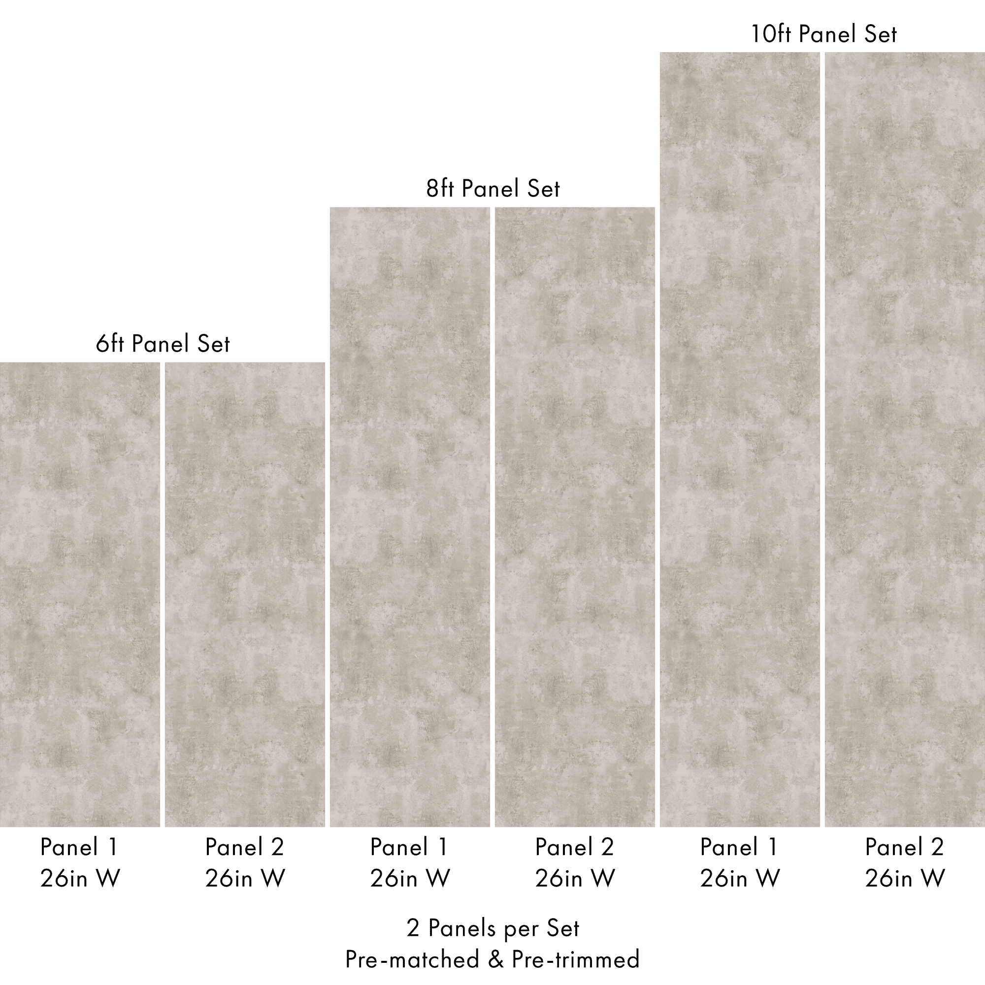 Each order includes 2 pre-matched, pre-trimmed panels designed for a seamless installation. Panels measure 26 inches wide and are available in 6 ft, 8 ft, or 10 ft lengths. For custom sizing, please contact us.