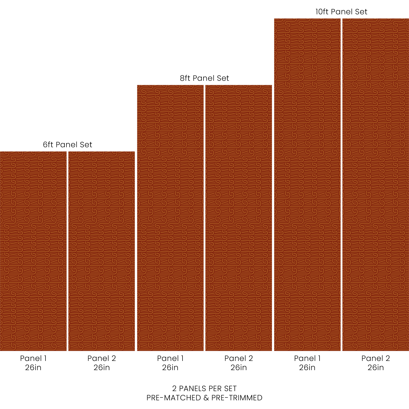 Each order consists of 2 pre-matched and pre-trimmed panels for an effortless installation. Each panel measures 26in W and either 6ft, 8ft, or 10ft L. Contact us for custom sizing.