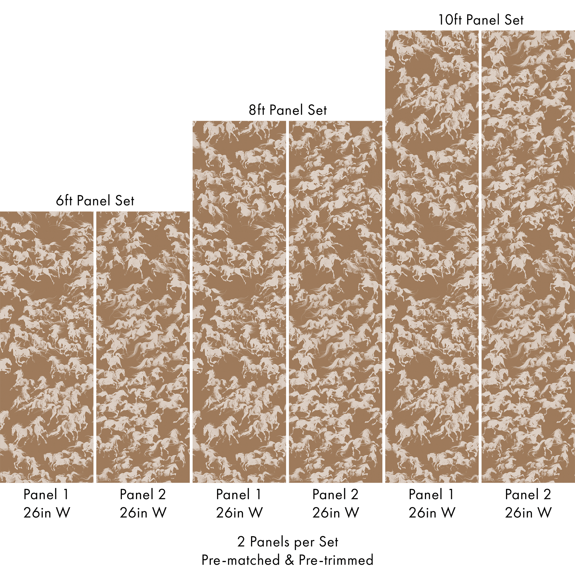 Each set includes 2 pre-matched and pre-trimmed panels designed for a seamless installation. Panels measure 26 inches wide and are available in 6 ft, 8 ft, or 10 ft lengths. For custom sizing, please contact us.