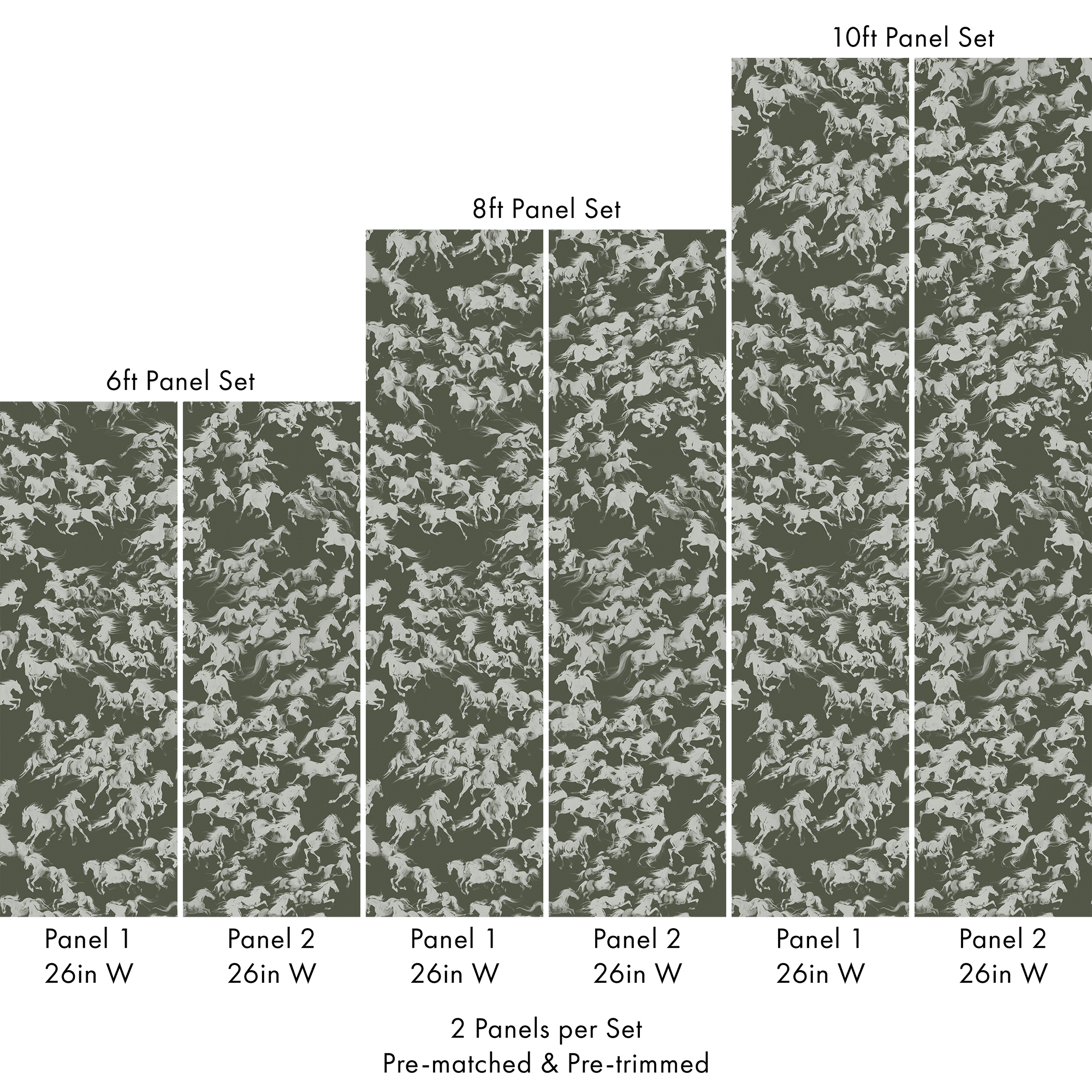 Each set includes 2 pre-matched and pre-trimmed panels designed for a seamless installation. Panels measure 26 inches wide and are available in 6 ft, 8 ft, or 10 ft lengths. For custom sizing, please contact us.