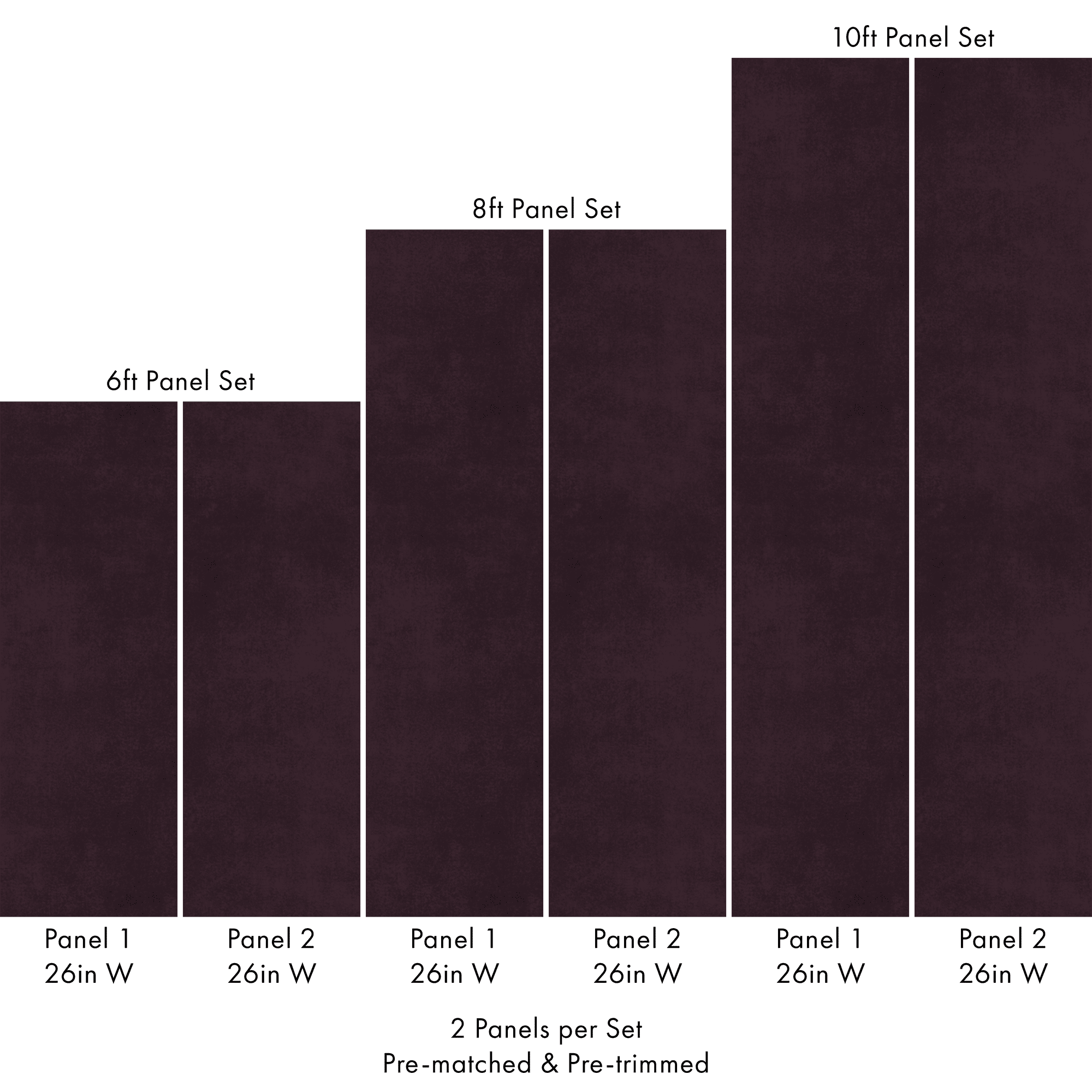 Each order includes 2 pre-matched, pre-trimmed panels designed for a seamless installation. Panels measure 26 inches wide and are available in 6 ft, 8 ft, or 10 ft lengths. For custom sizing, please contact us.