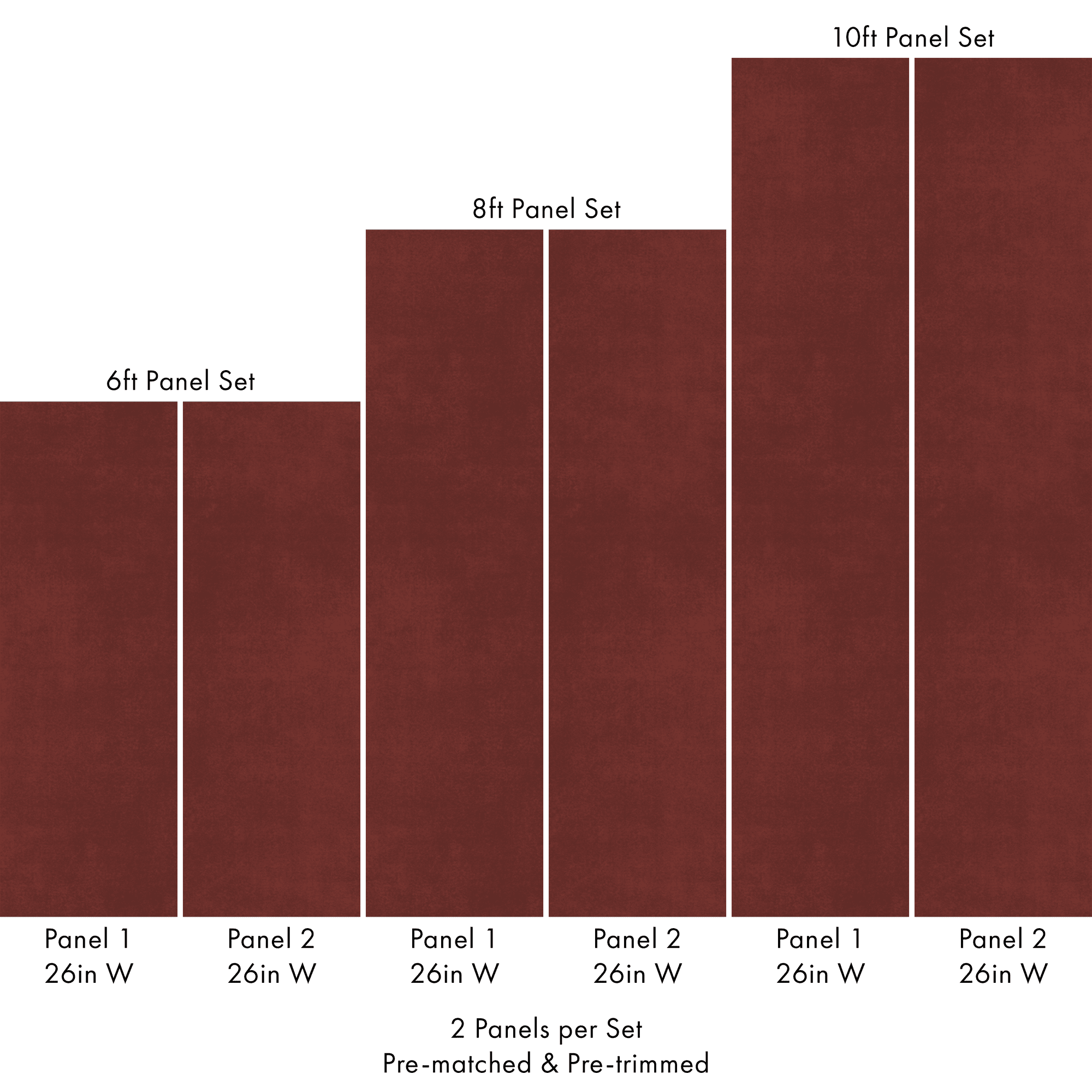 Each order includes 2 pre-matched, pre-trimmed panels designed for a seamless installation. Panels measure 26 inches wide and are available in 6 ft, 8 ft, or 10 ft lengths. For custom sizing, please contact us.