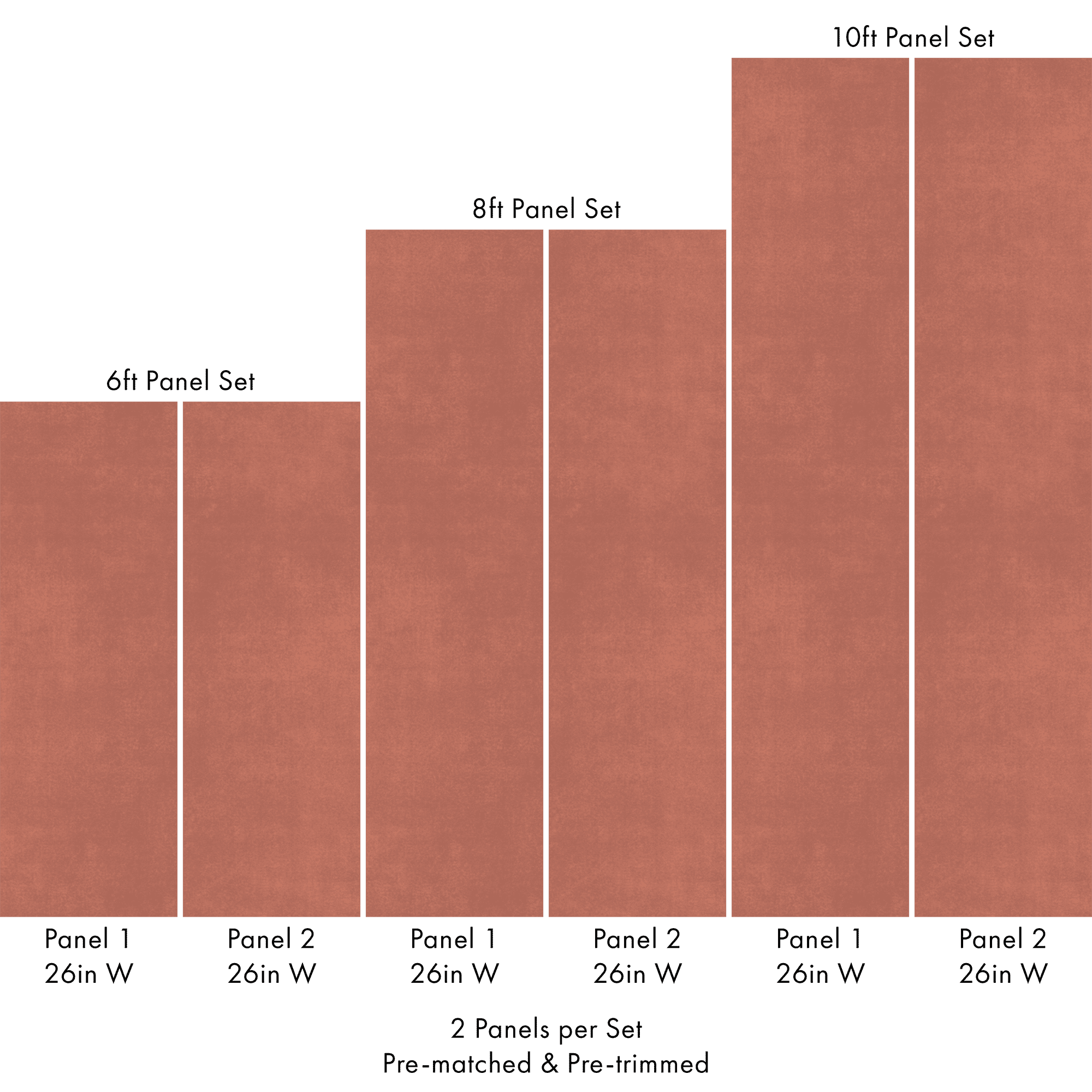 Each order includes 2 pre-matched, pre-trimmed panels designed for a seamless installation. Panels measure 26 inches wide and are available in 6 ft, 8 ft, or 10 ft lengths. For custom sizing, please contact us.