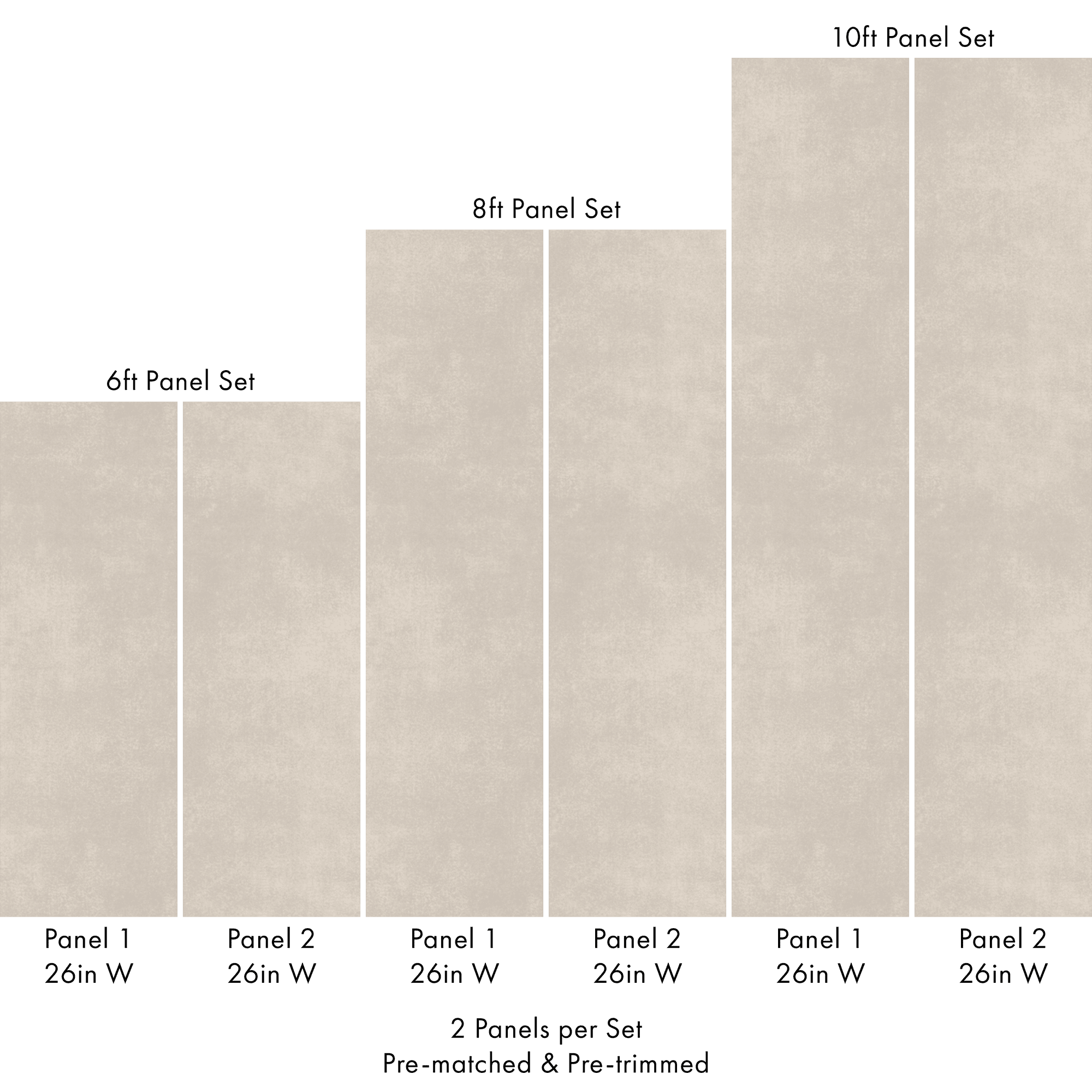 Each order includes 2 pre-matched, pre-trimmed panels designed for a seamless installation. Panels measure 26 inches wide and are available in 6 ft, 8 ft, or 10 ft lengths. For custom sizing, please contact us.