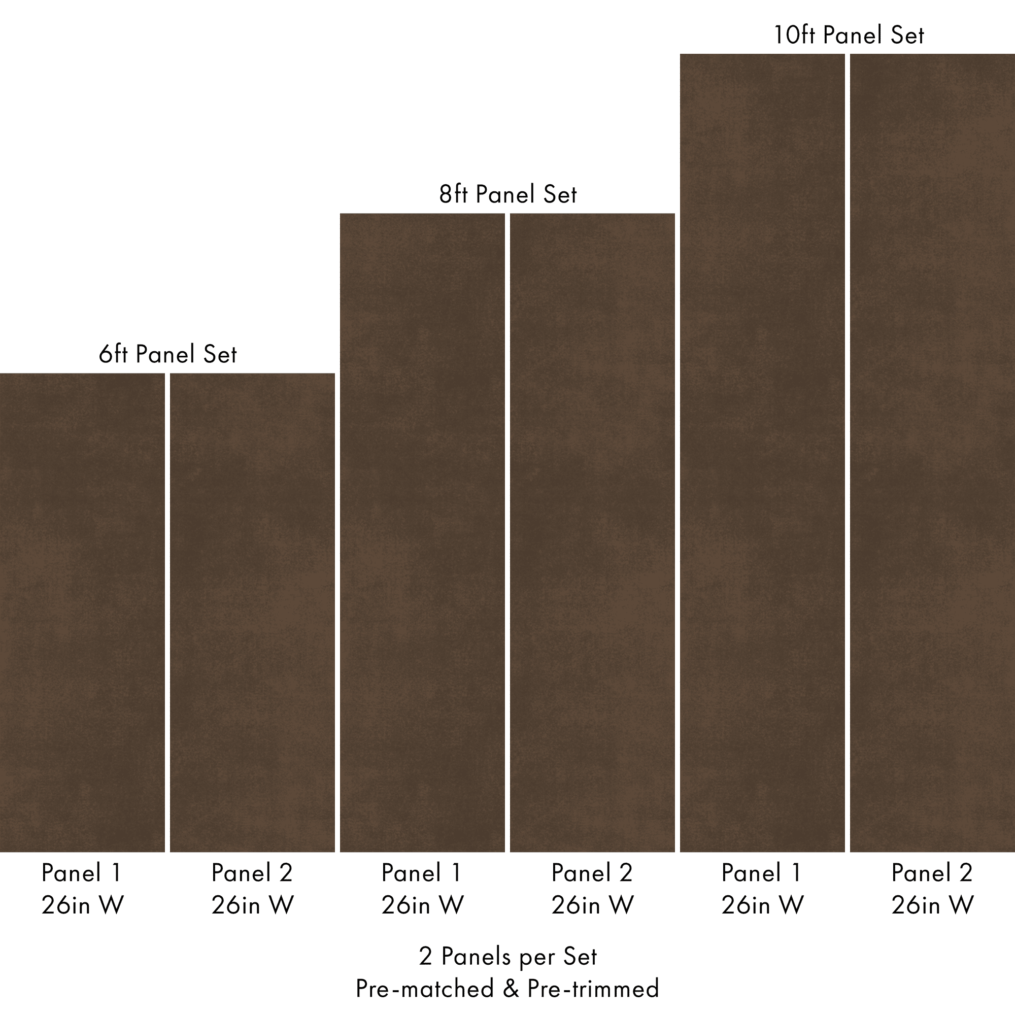 Each order includes 2 pre-matched, pre-trimmed panels designed for a seamless installation. Panels measure 26 inches wide and are available in 6 ft, 8 ft, or 10 ft lengths. For custom sizing, please contact us.