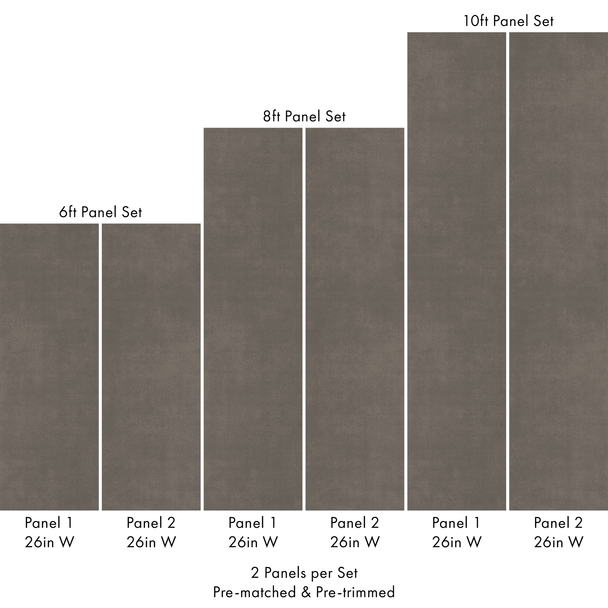Each order includes 2 pre-matched, pre-trimmed panels designed for a seamless installation. Panels measure 26 inches wide and are available in 6 ft, 8 ft, or 10 ft lengths. For custom sizing, please contact us.