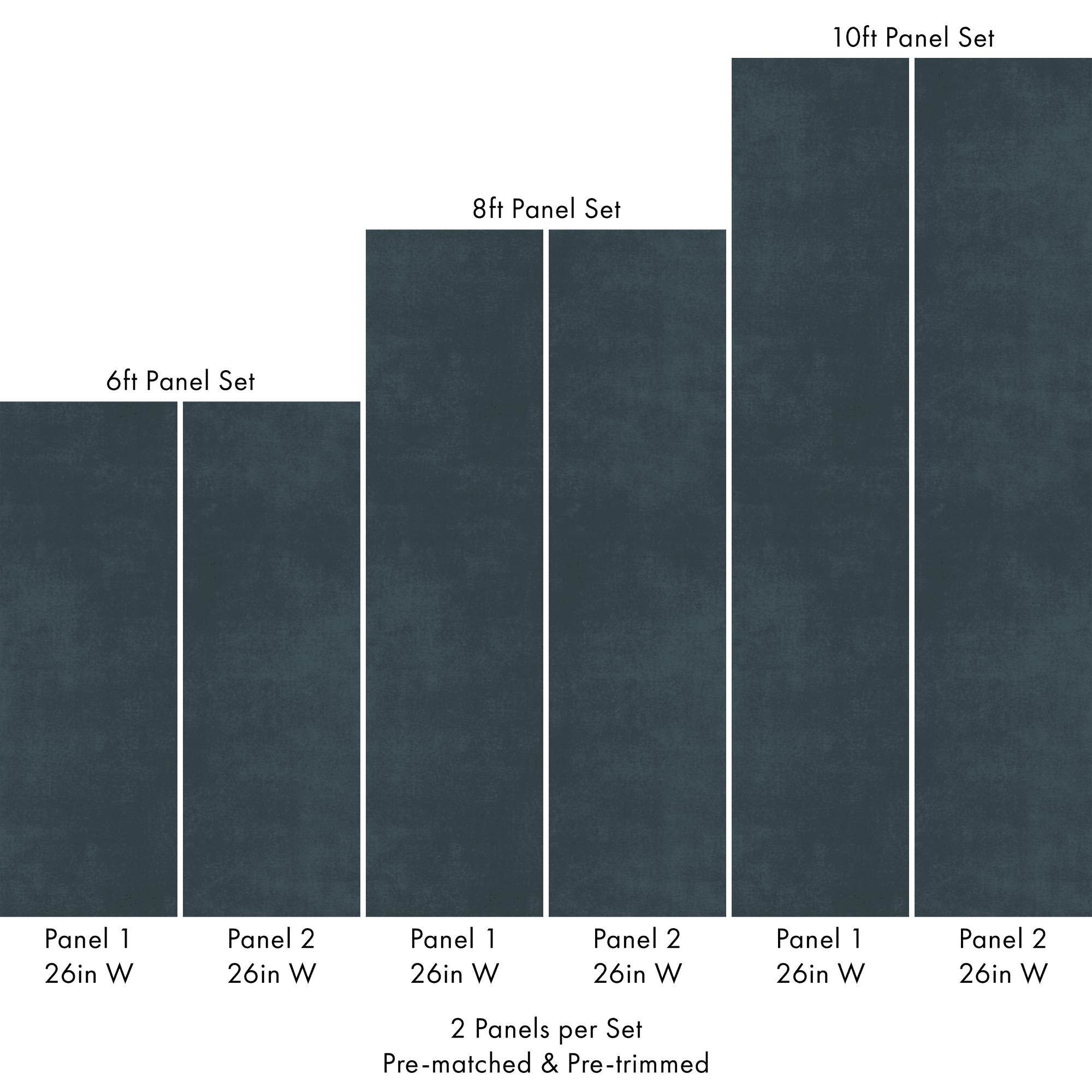 Each order includes 2 pre-matched, pre-trimmed panels designed for a seamless installation. Panels measure 26 inches wide and are available in 6 ft, 8 ft, or 10 ft lengths. For custom sizing, please contact us.