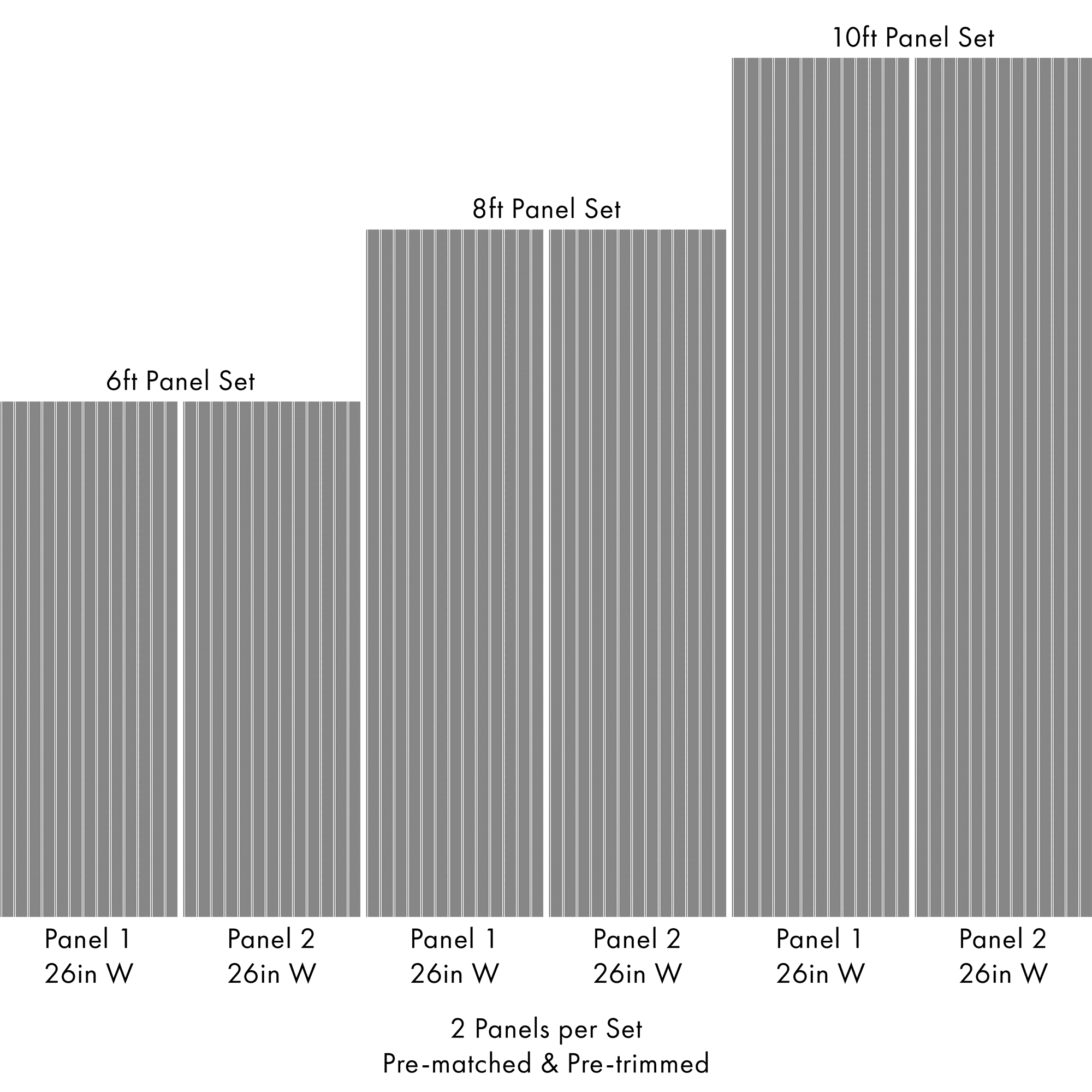 Each order consists of 2 pre-matched and pre-trimmed panels for an effortless installation. Each panel measures 26in W and either 6ft, 8ft, or 10ft L. Contact us for custom sizing.