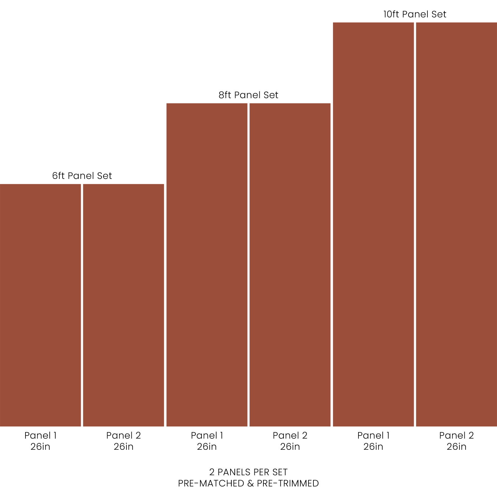 Each order consists of 2 pre-matched and pre-trimmed panels for an effortless installation. Each panel measures 26in W and either 6ft, 8ft, or 10ft L. Contact us for custom sizing.