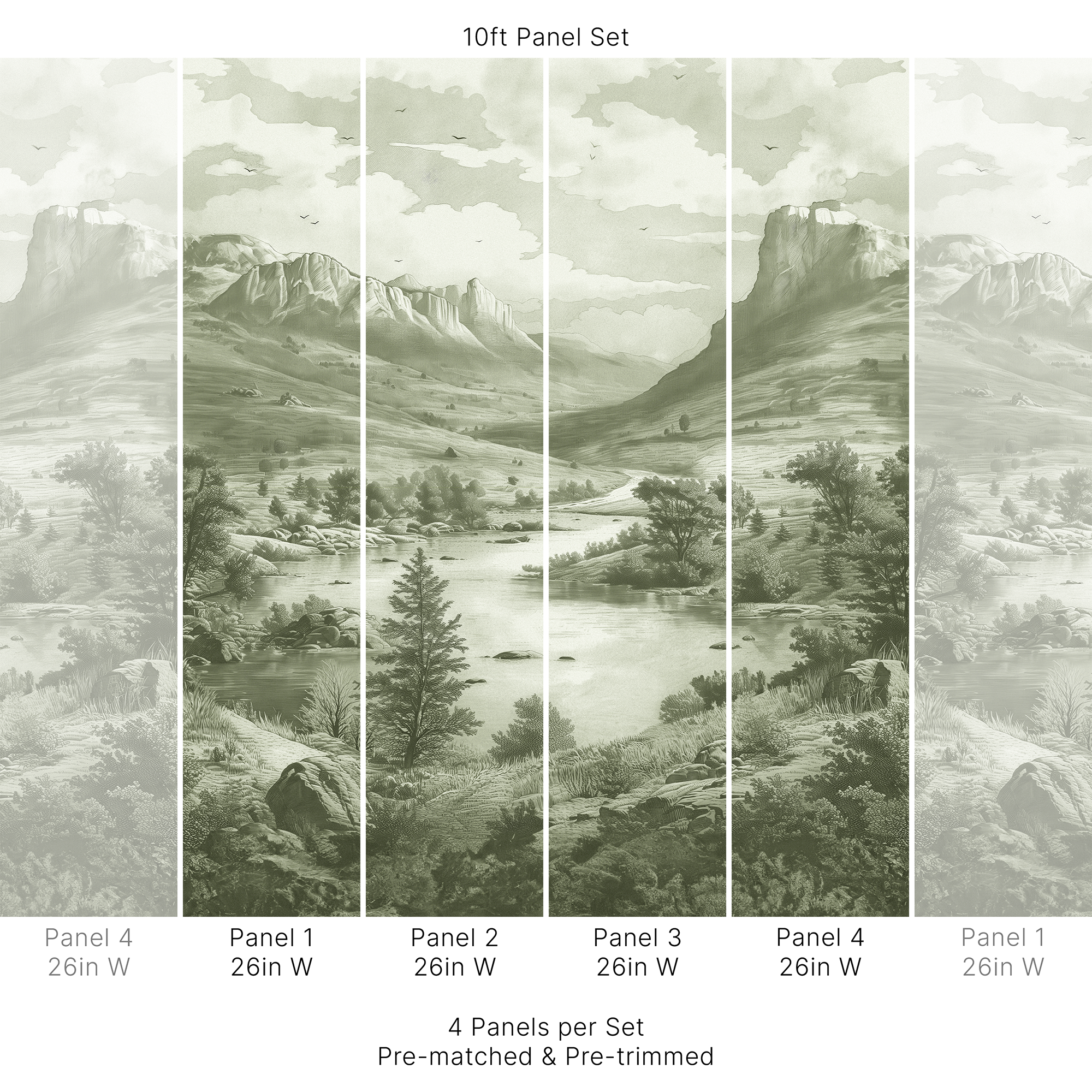 10ft Mural Set: 4 panels x 26in W x 10ft L (66cm x 305cm)
