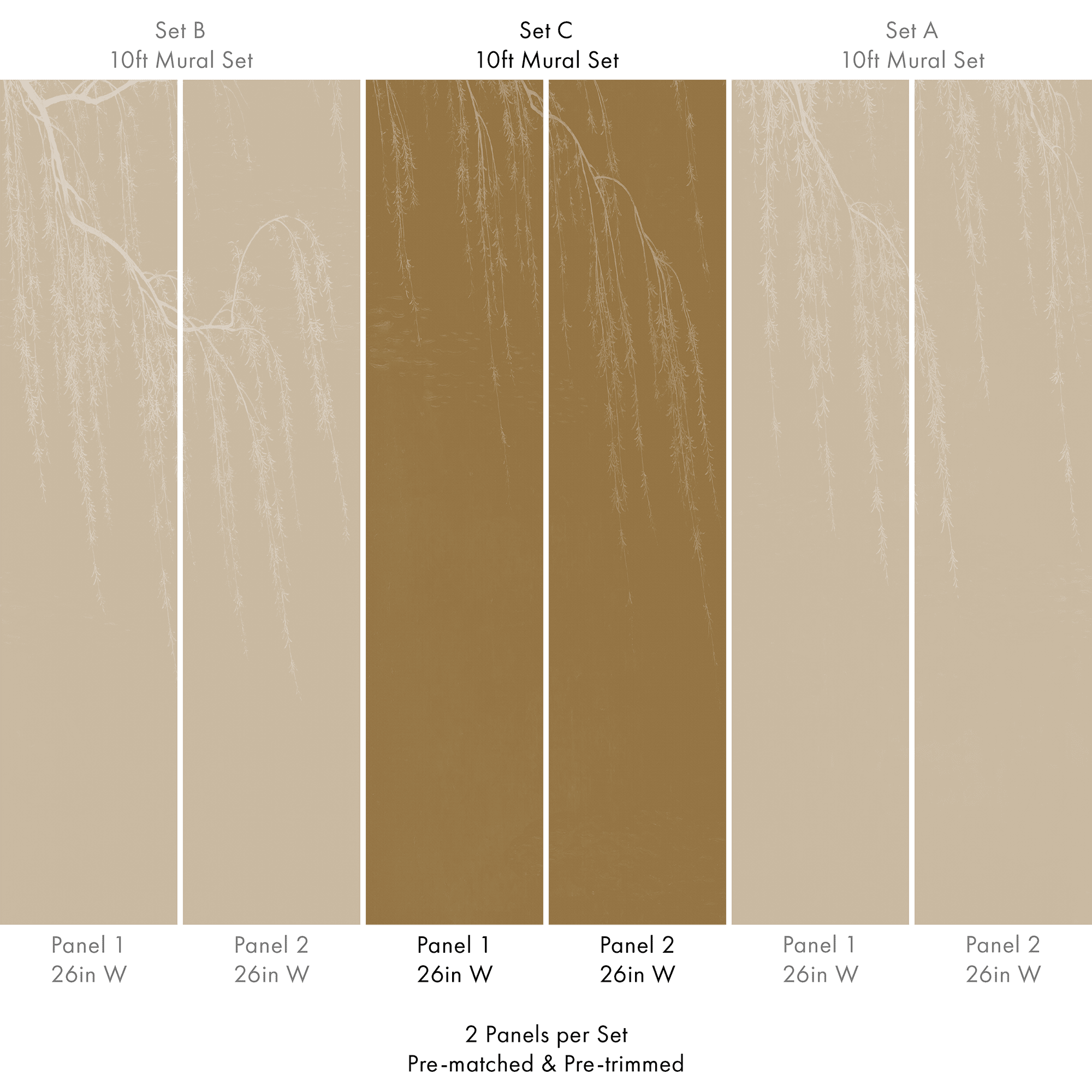 Our Willow Wall Mural gently cascades with ethereal, hand-painted branches, gracefully suspended like a poetic whisper on rich, metallic grounds. Evocative of quiet contemplation amid serene gardens, each sweeping brushstroke creates a vast, tranquil tapestry.