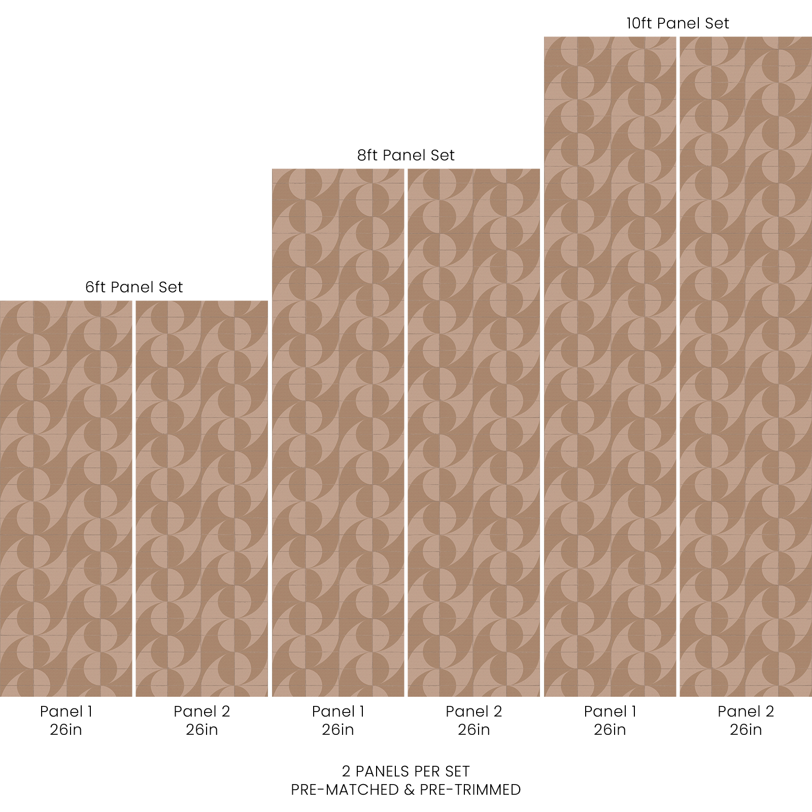 Each order consists of 2 pre-matched, pre-trimmed panels for an effortless installation. Each panel measures 26in W and either 6ft, 8ft, or 10ft L. Contact us for custom sizing.