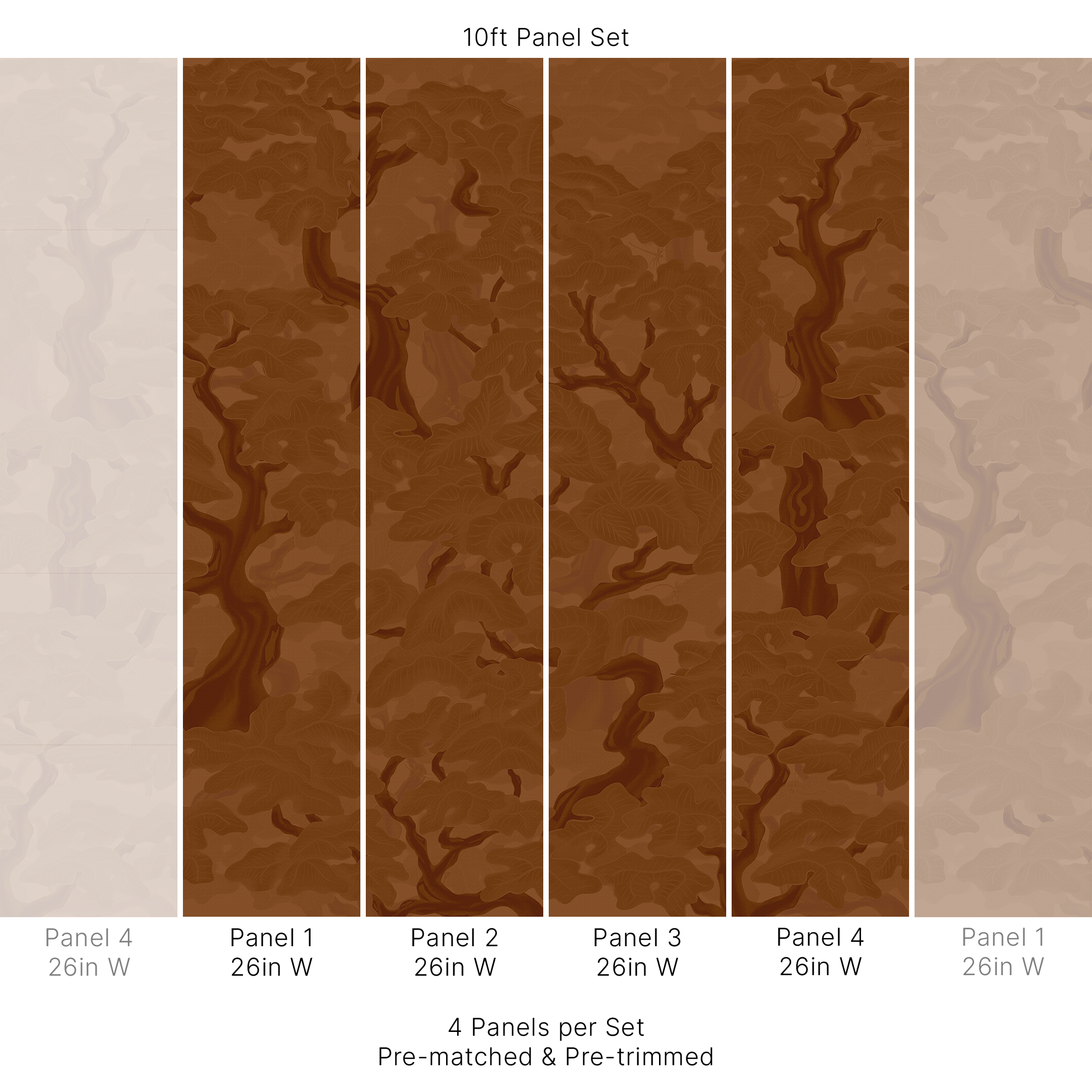 This wall mural is produced and sold in a pre-matched & pre-trimmed 4-panel set with a total width of 104in (264cm).