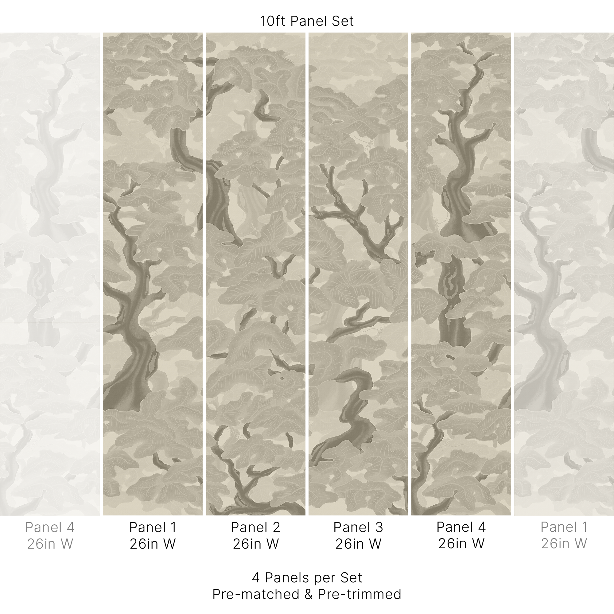 This wall mural is produced and sold in a pre-matched & pre-trimmed 4-panel set with a total width of 104in (264cm).