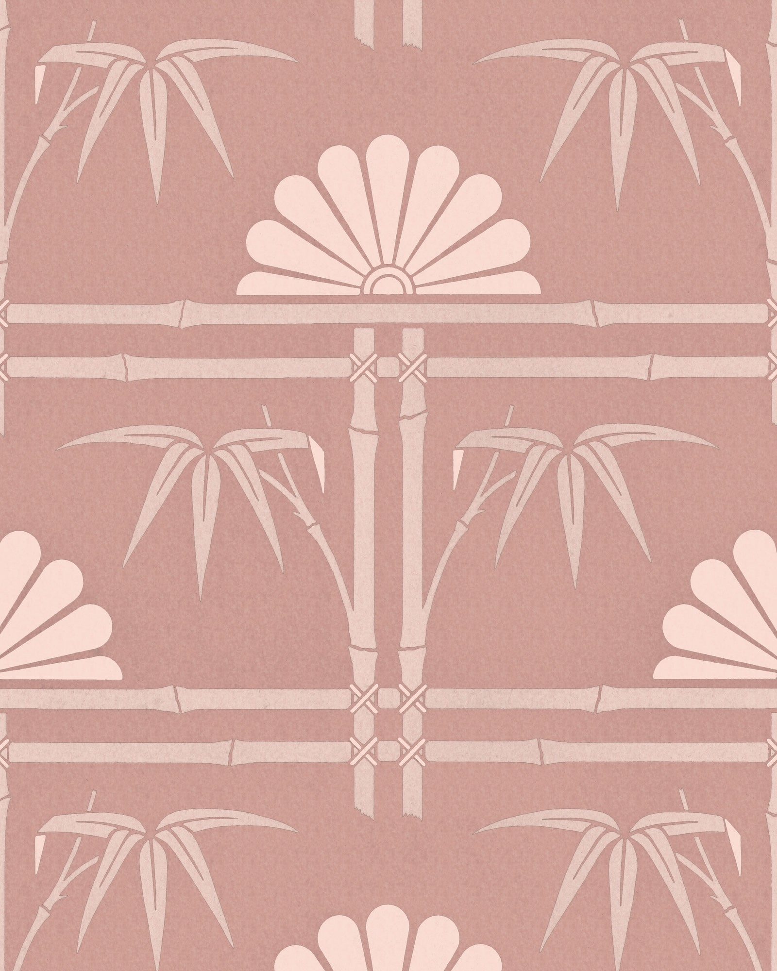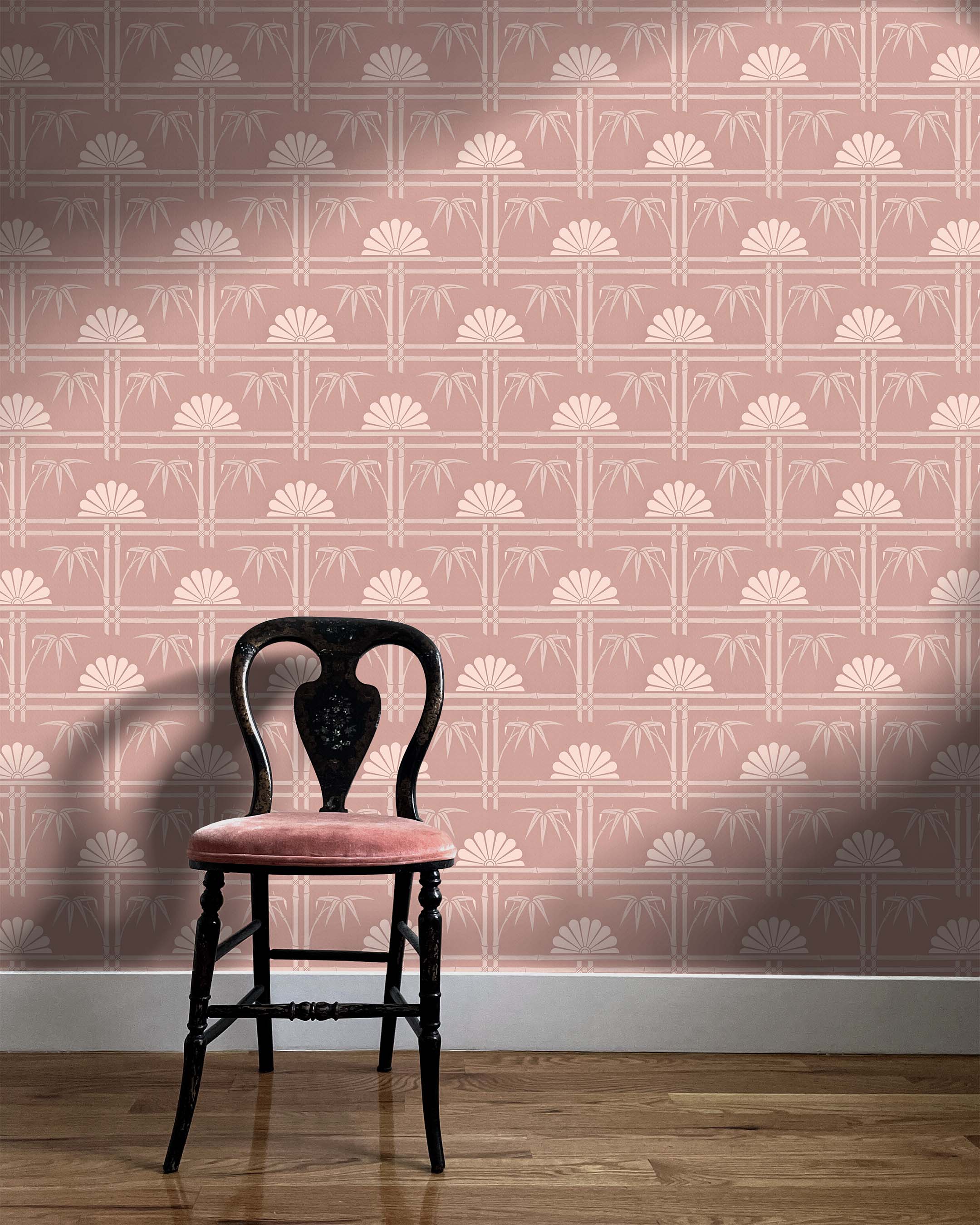 A study in structure and serenity, Bamboo Trellis Wallpaper channels the symmetry of classic Japanese design through interlocking canes and soft, arching fronds. Rhythmic latticework is softened by fan-like motifs, evoking the sunrise behind lush bamboo groves.