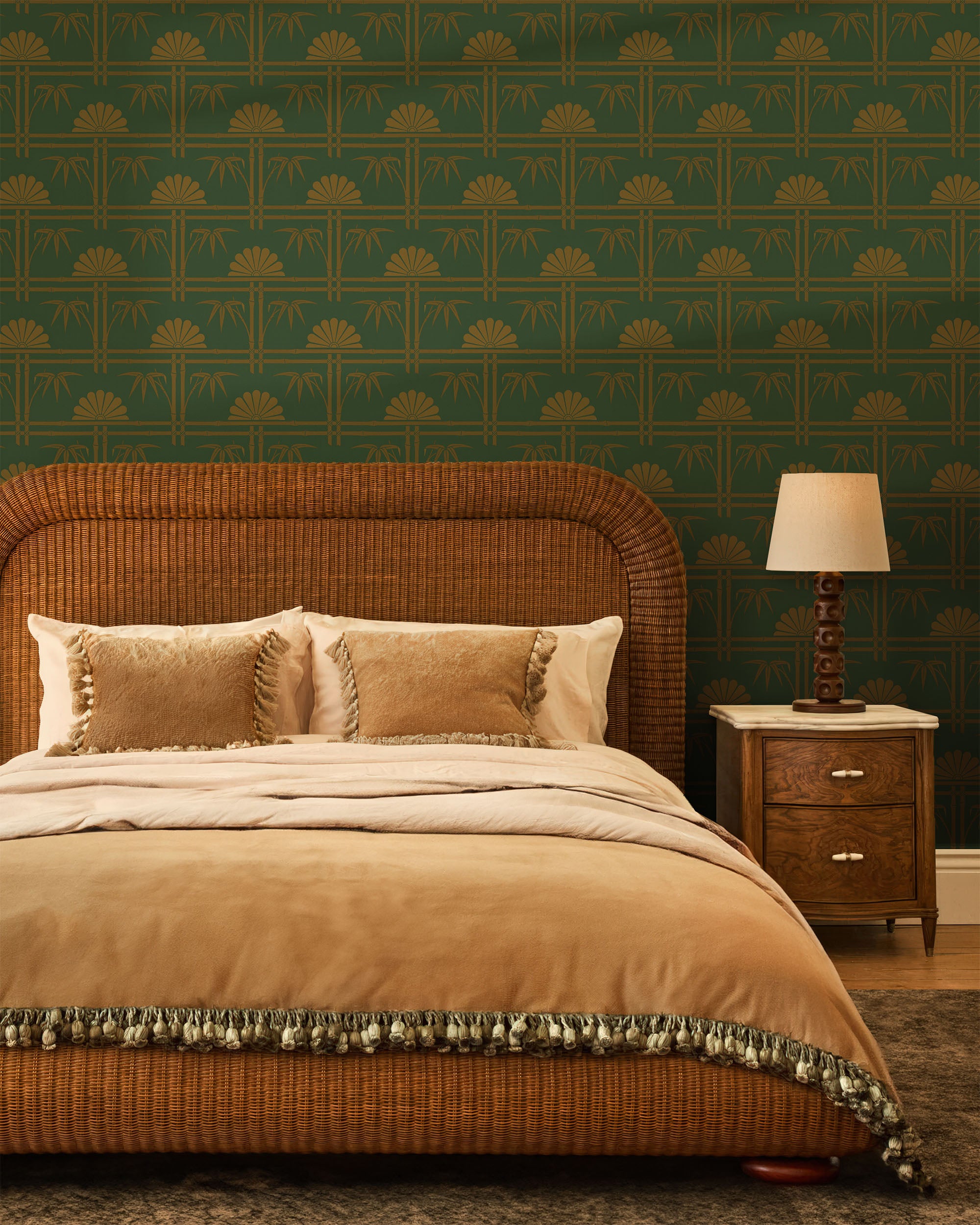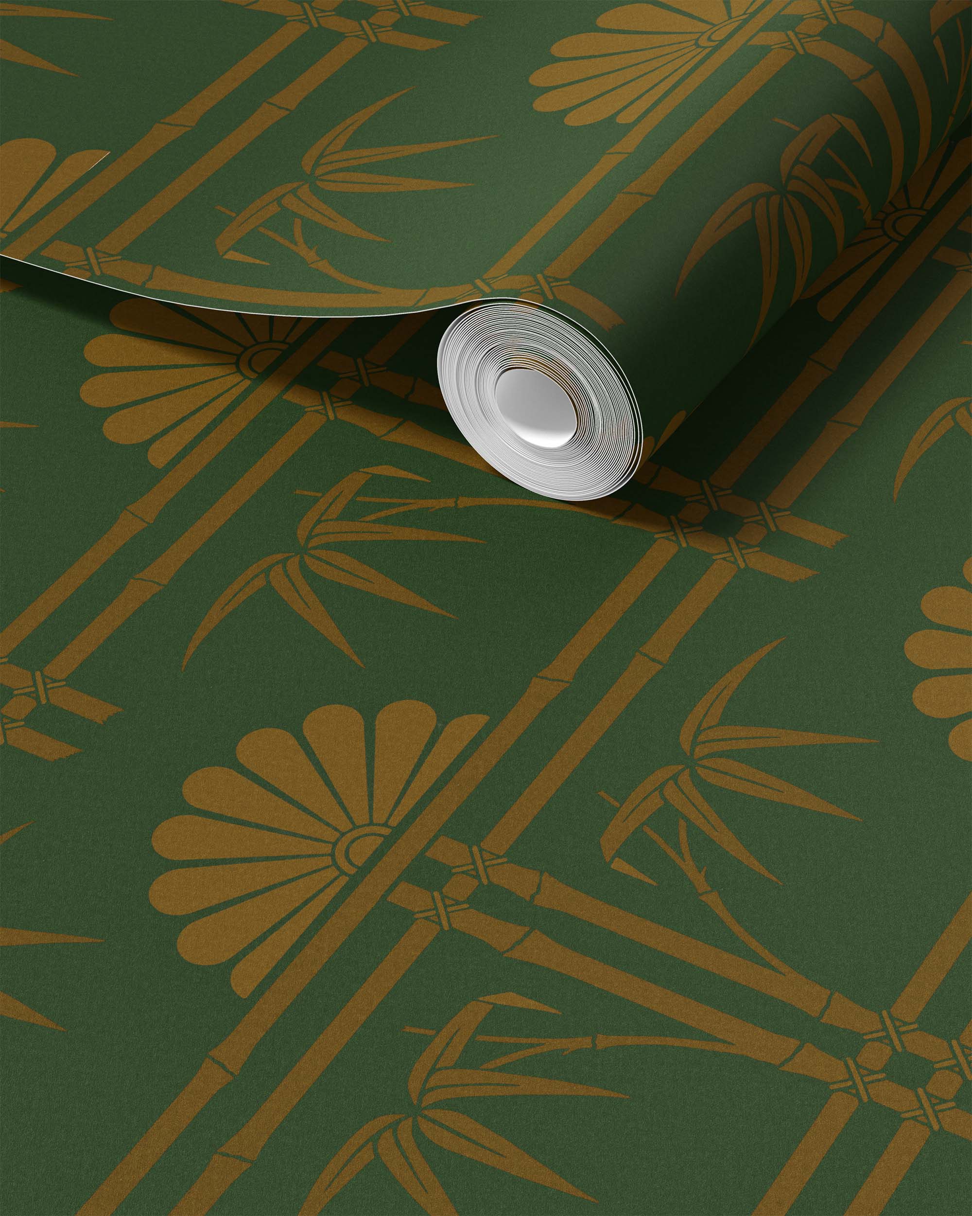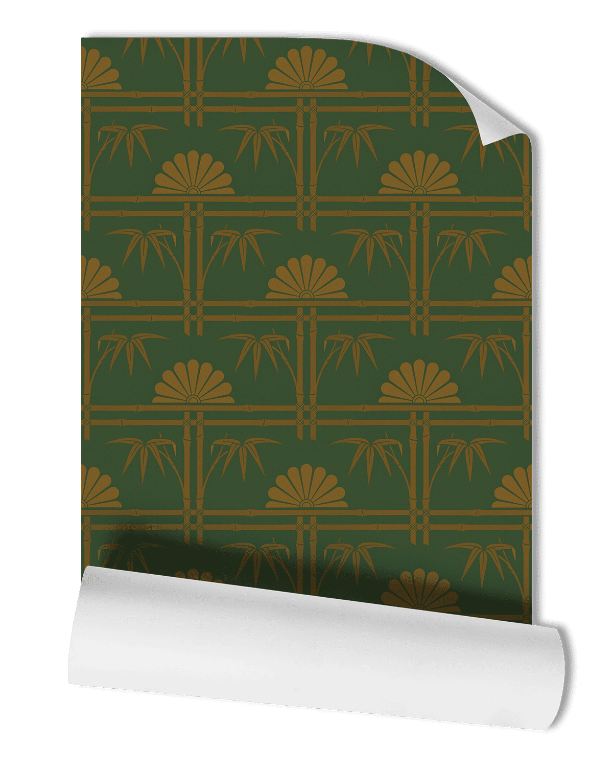 A study in structure and serenity, Bamboo Trellis Wallpaper channels the symmetry of classic Japanese design through interlocking canes and soft, arching fronds. Rhythmic latticework is softened by fan-like motifs, evoking the sunrise behind lush bamboo groves.