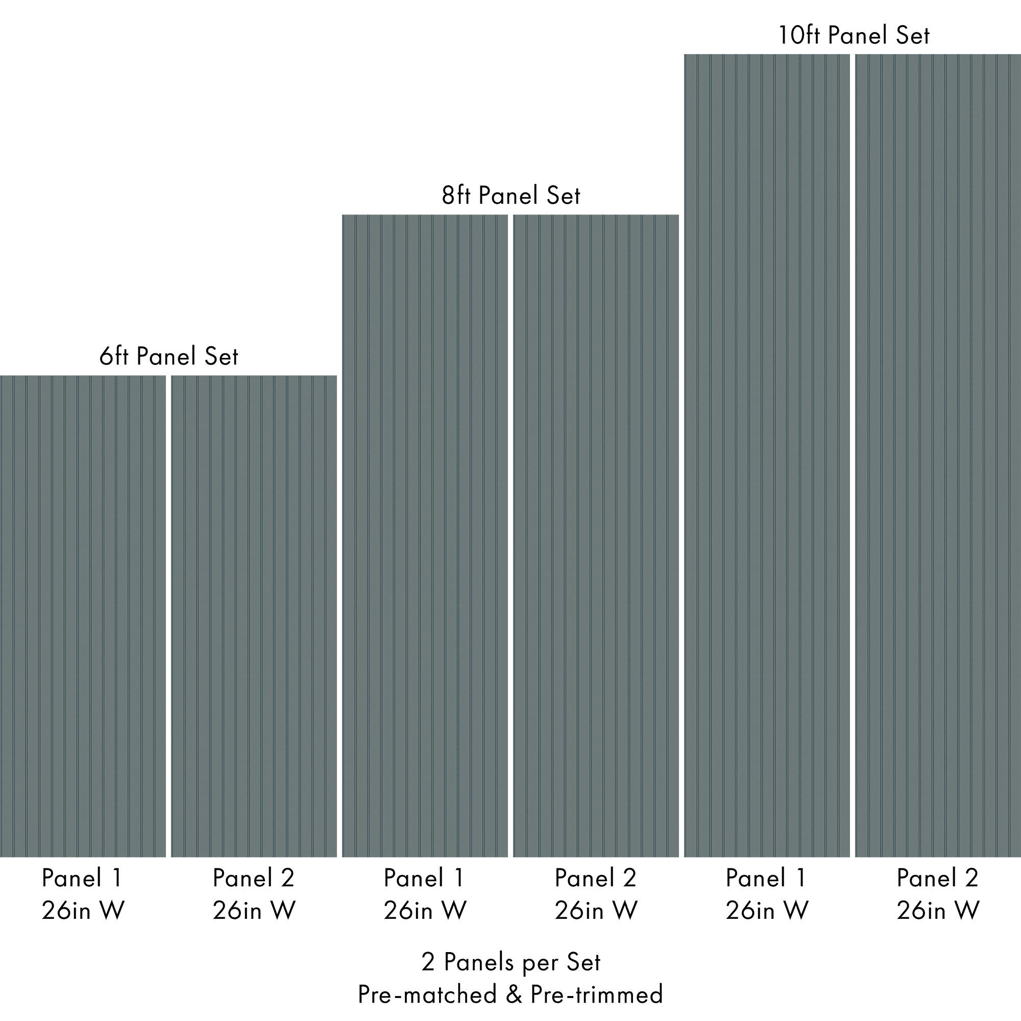 Each order consists of 2 pre-matched and pre-trimmed panels for an effortless installation. Each panel measures 26in W and either 6ft, 8ft, or 10ft L. Contact us for custom sizing.