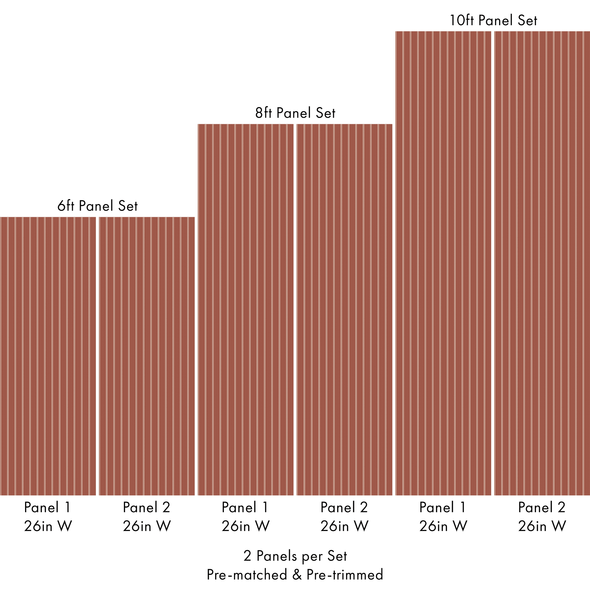 Each order consists of 2 pre-matched and pre-trimmed panels for an effortless installation. Each panel measures 26in W and either 6ft, 8ft, or 10ft L. Contact us for custom sizing.