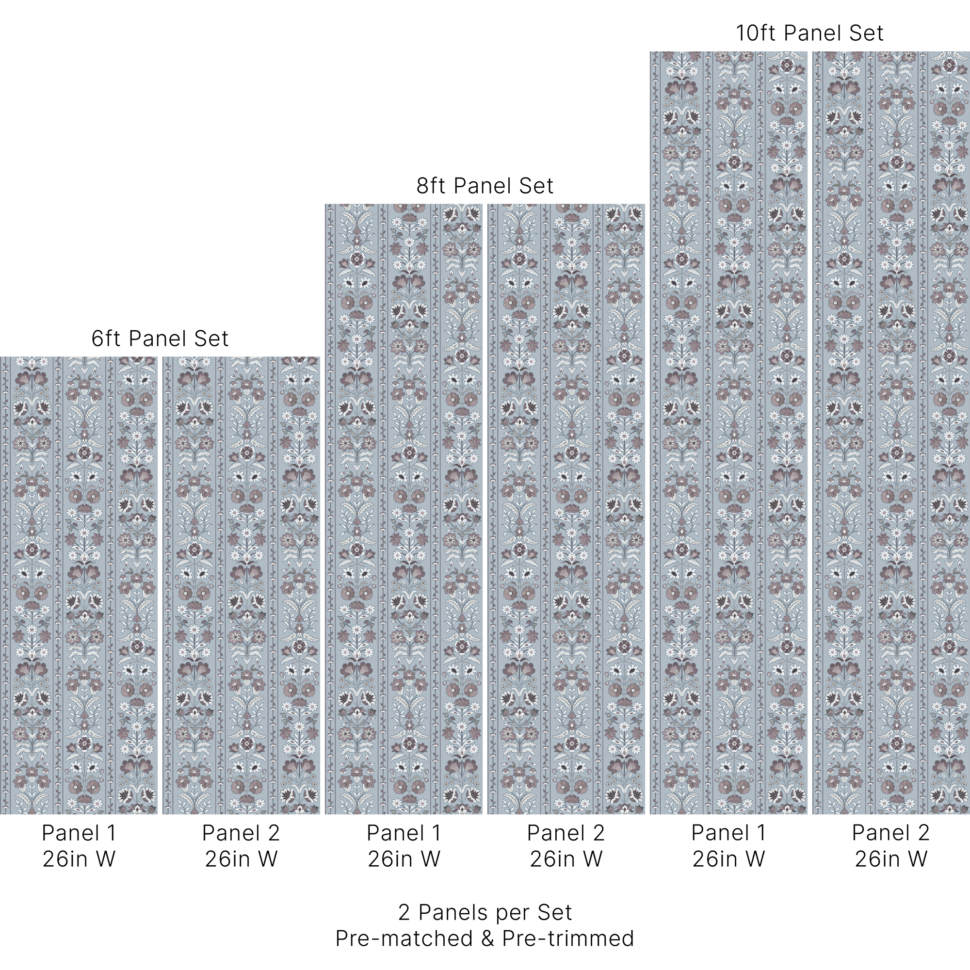 This wallpaper is produced and sold in a pre-matched & pre-trimmed 2-panel set with a total width of 52in (132cm).