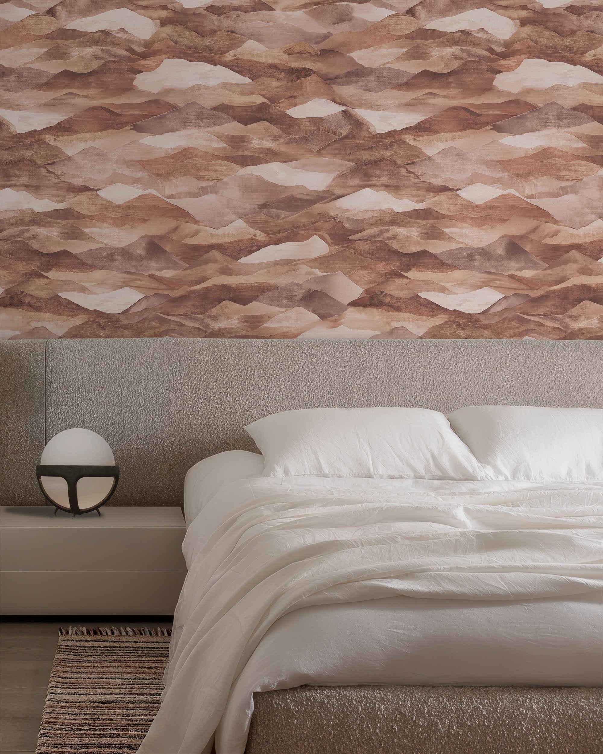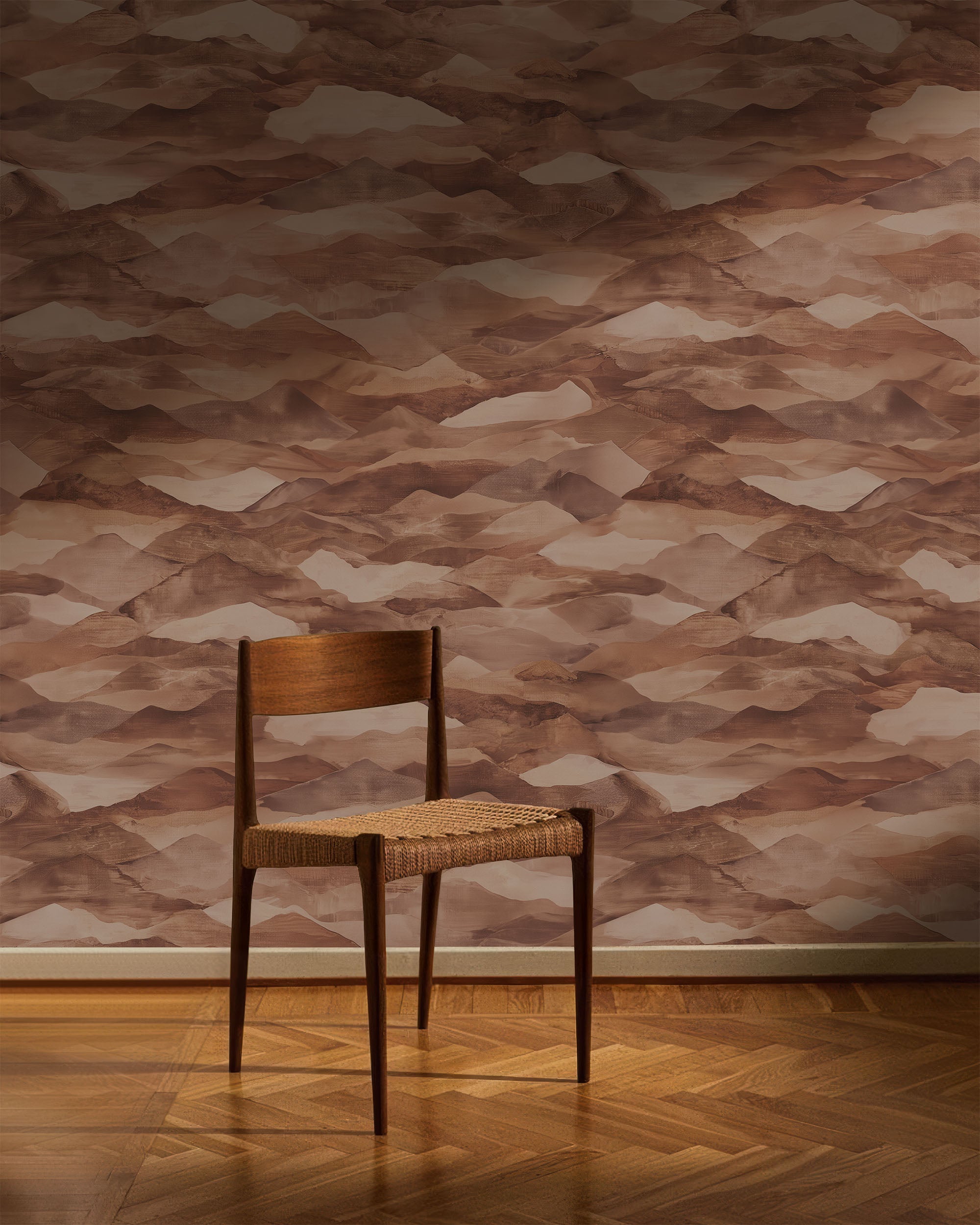 Terra Wallpaper evokes the mystique of misty mountains and the vastness of desert landscapes, enveloping your space in a serene atmosphere. Create an elevated interior that seamlessly blends earthy, organic elements with the untamed beauty of the outdoors.